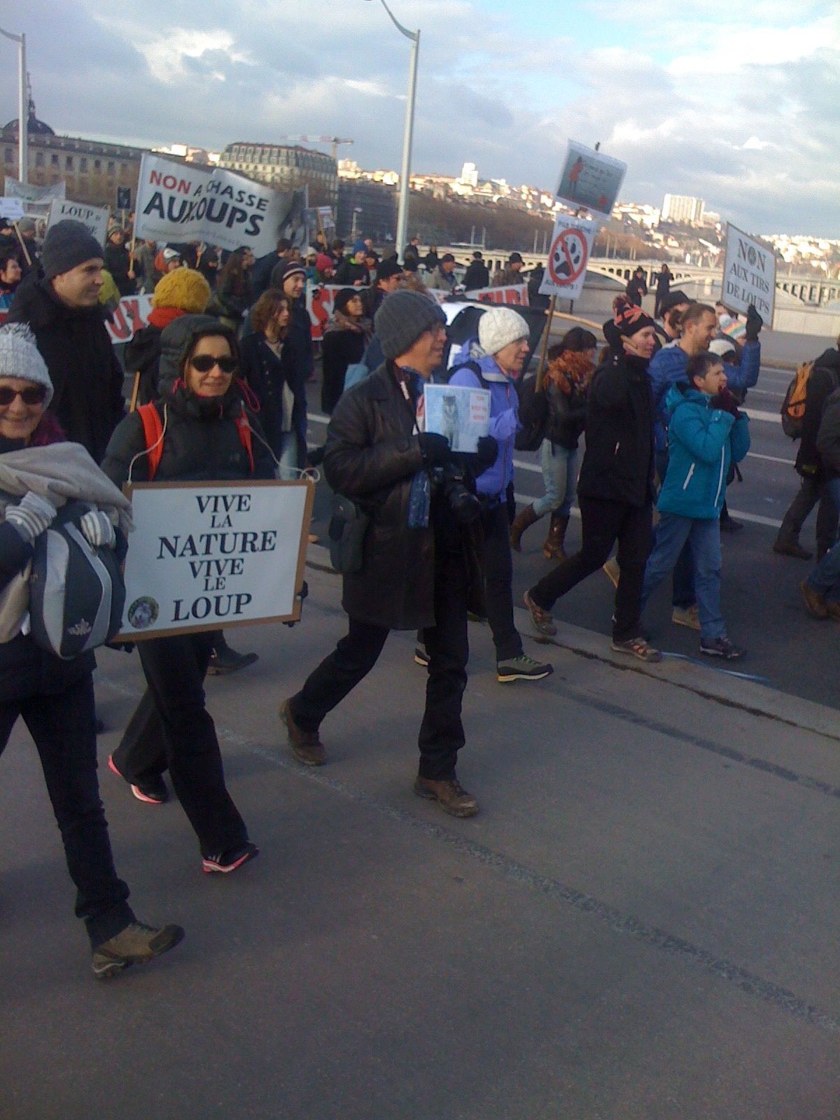 Pour en revenir à la population lyonnaise, peut-être un peu moutonnière, j’observe que, la manif’ pour Charlie Hebdo exceptée – manif’ dont, dans cent ans, sociologues et historiens parviendront peut-être à établir le sens – je n’avais pas encore vu, entre Rhône et Saône, une mobilisation identique à celle-ci en faveur de l’emploi, des libertés, ou suggérant de renvoyer Hollande et Valls à leurs chères études. La cause des loups : un podrome ?