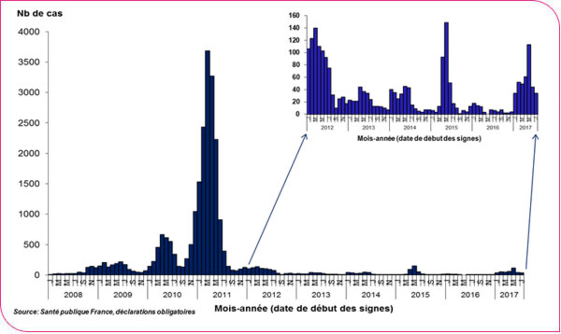 Pour finir, la courbe de l’Institut de veille sanitaire concernant la rougeole… : http://invs.santepubliquefrance.fr/Dossiers-thematiques/Maladies-infectieuses/Maladies-a-prevention-vaccinale/Rougeole/Points-d-actualites/Epidemie-de-rougeole-en-France.-Actualisation-des-donnees-de-surveillance-au-3-aout-2017