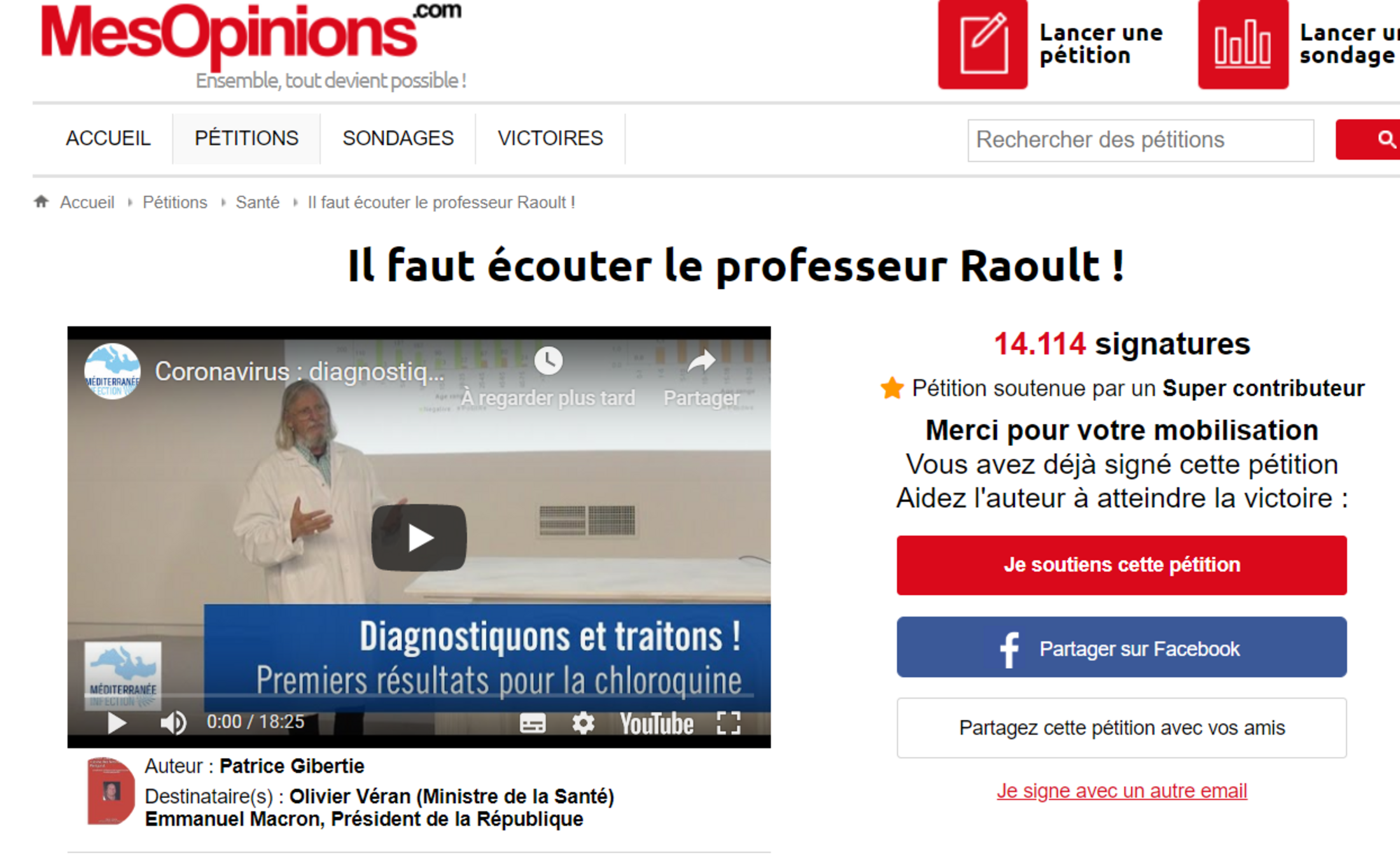 Ces résultats confirment les récentes conclusions du Professeur Didier Raoult de l'Institut Hospitalier Universitaire de Marseille avec 24 patients traités par la chloroquine: