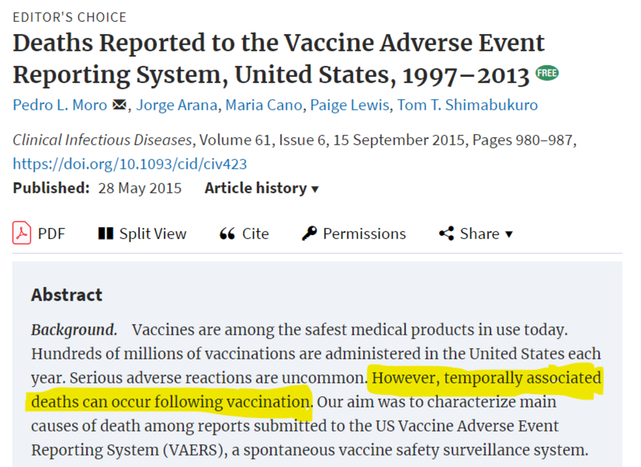 On apprend donc que «cependant, des décès associés temporellement peuvent survenir après la vaccination» !
