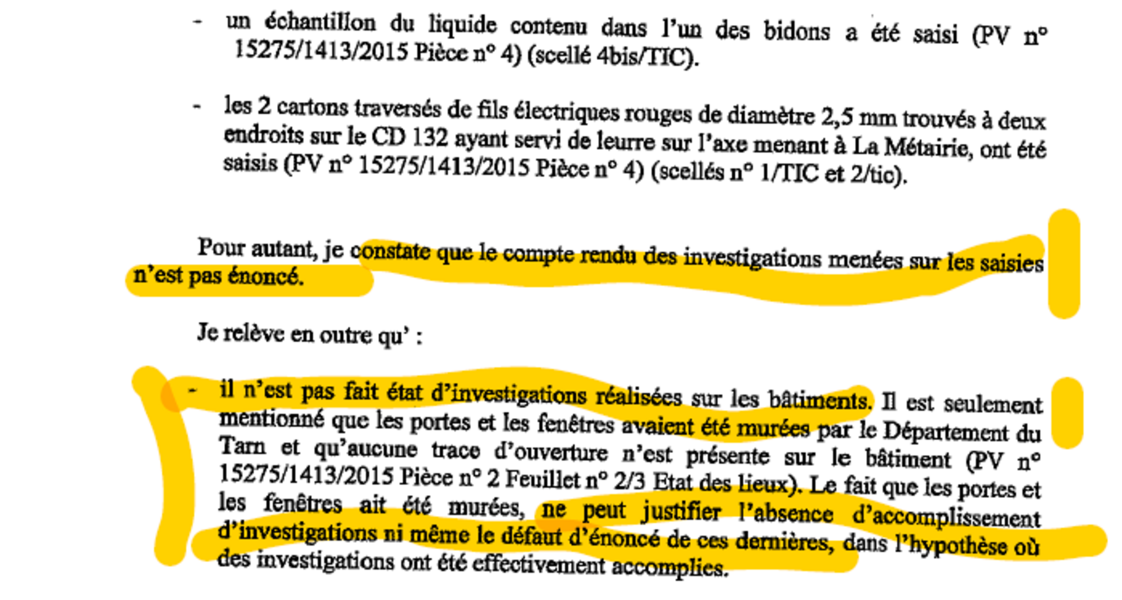 Mais comme il y a eu quelques investigations juste après l’incendie et que du matériel incendiaire avait été mis sous scellés, on aurait pu soutenir que ces investigations avaient été suffisantes. En tout cas auprès de juges un tantinet complaisants… car les scellés ont été détruits sur ordre du procureur Dérens ! (je vais y revenir dans un prochain épisode)