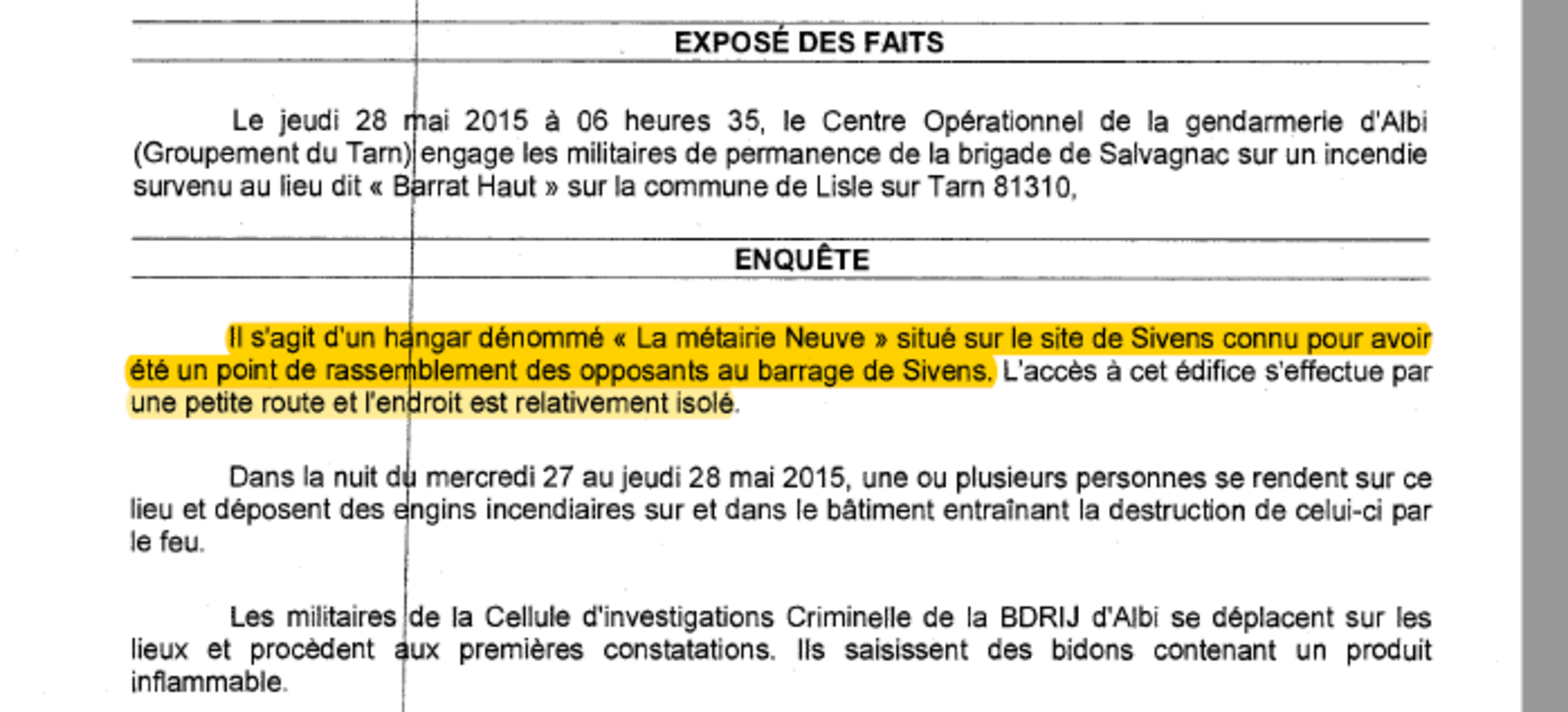 Nous nous rendrons compte en janvier 2017 que même le dossier de la non-enquête du procureur Dérens reconnaît que la Métairie Neuve était devenue un symbole de la lutte sociale justifiée contre le barrage de Sivens :