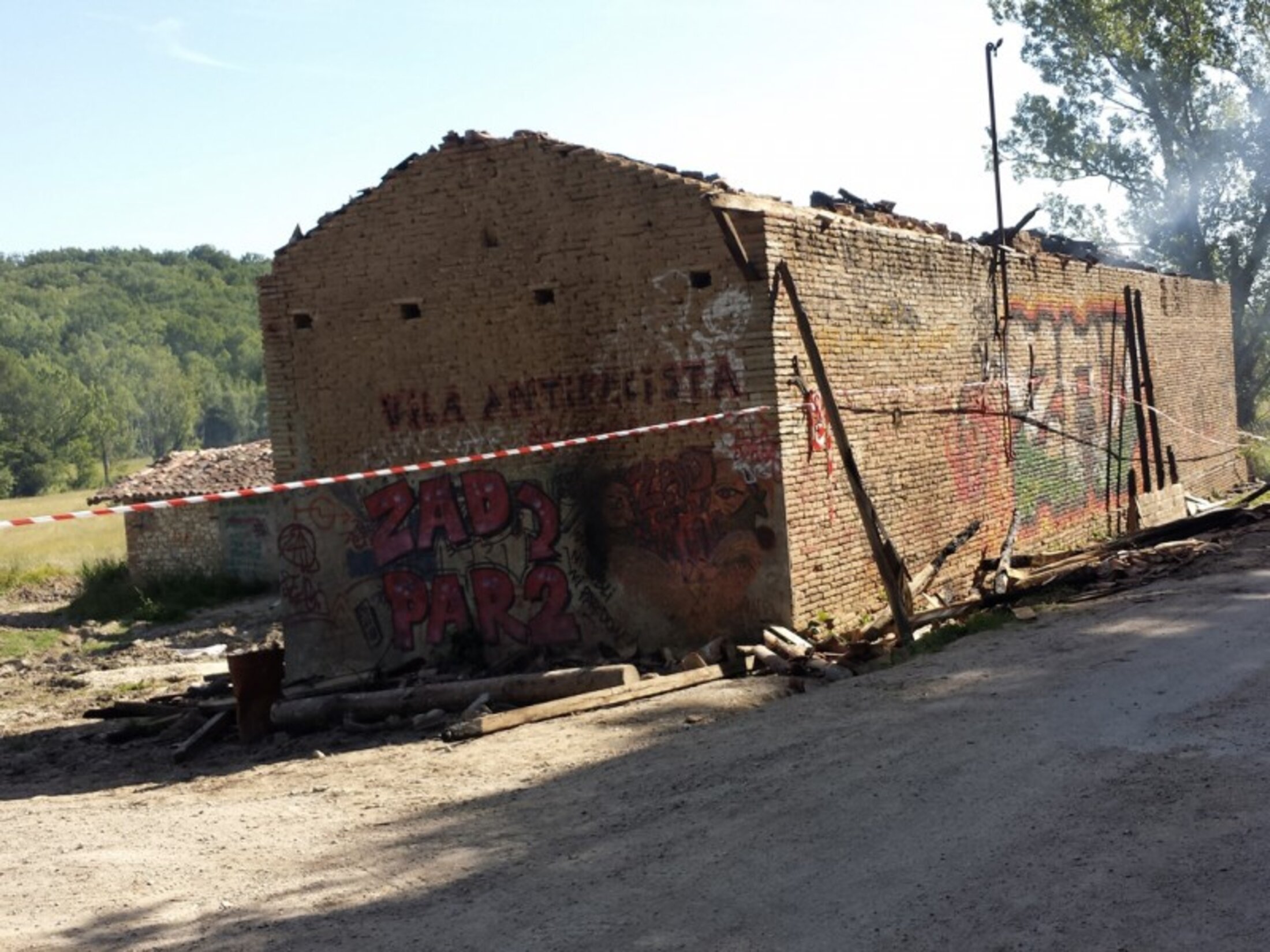 Vous voyez ci-dessus le mur nord de la Métairie Neuve fumante après l’incendie. Vous pouvez donc comprendre pourquoi la mafia tarnaise, qui n’avait pas supporté la contestation justifiée du barrage de Sivens et voulait raser ces biens qui en étaient le symbole, n’a surtout pas demandé à un expert de venir apprécier le prétendu « péril grave et imminent » qui aurait menacé « l’axe » de circulation en question.