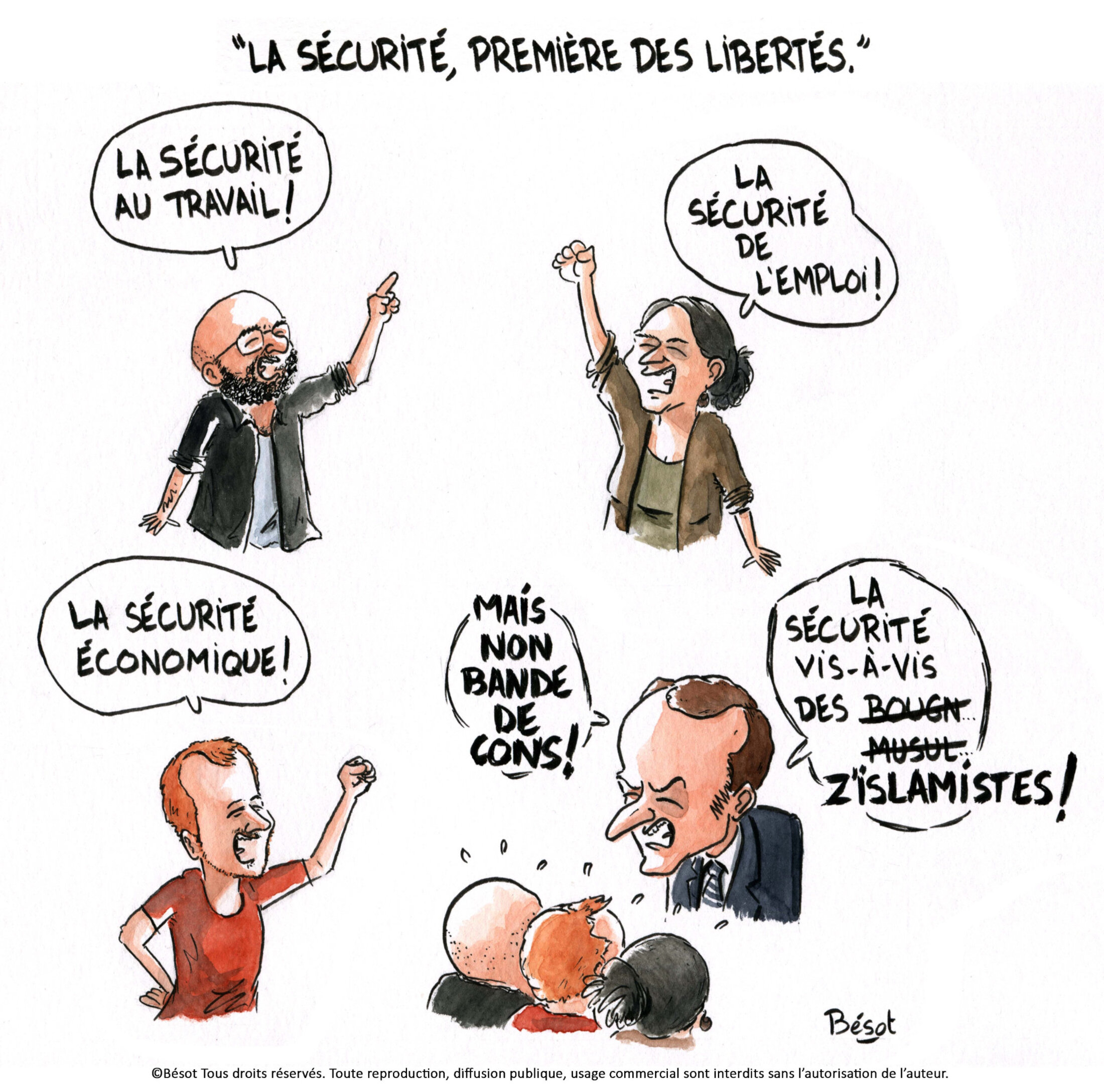 Hier soir, sur France 2, j'ai entendu Xavier Bertrand dire que "ce que veulent les français, c'est plus de sécurité et moins d'immigration". Je ne dois donc pas être un français... (dessin paru en 2021 dans feu Le Sans-Culotte 85)