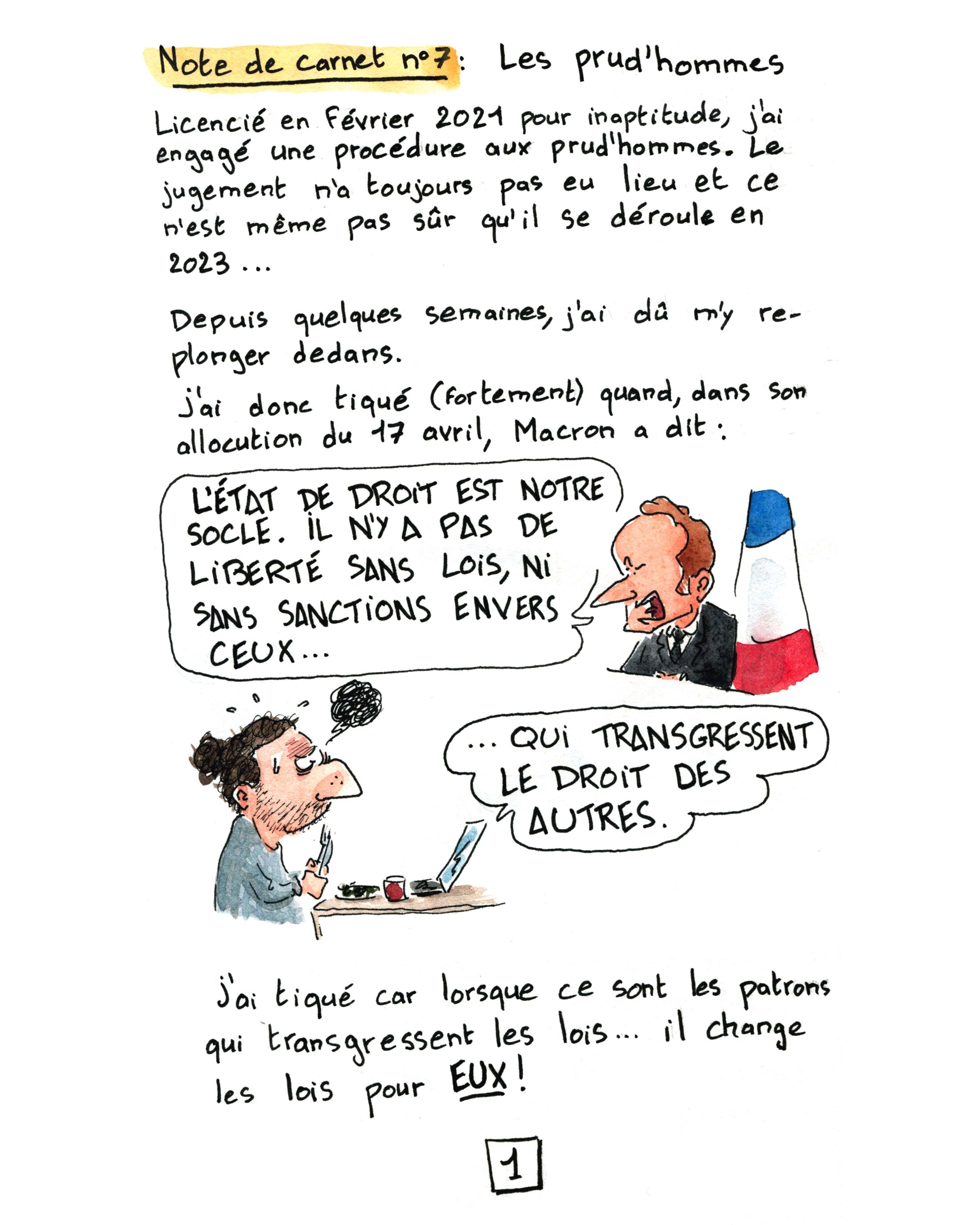 Note de Carnet qui concerne mon action aux prud'hommes, et les conséquences que cela peut avoir sur le moral...