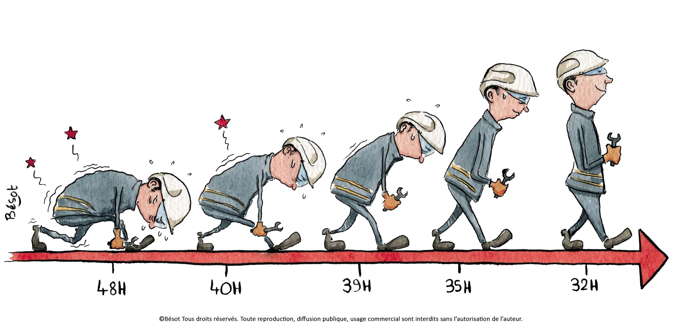 Pour illustrer un tract de la CGT RICL, sur la semaine de 4 jours à 32h.