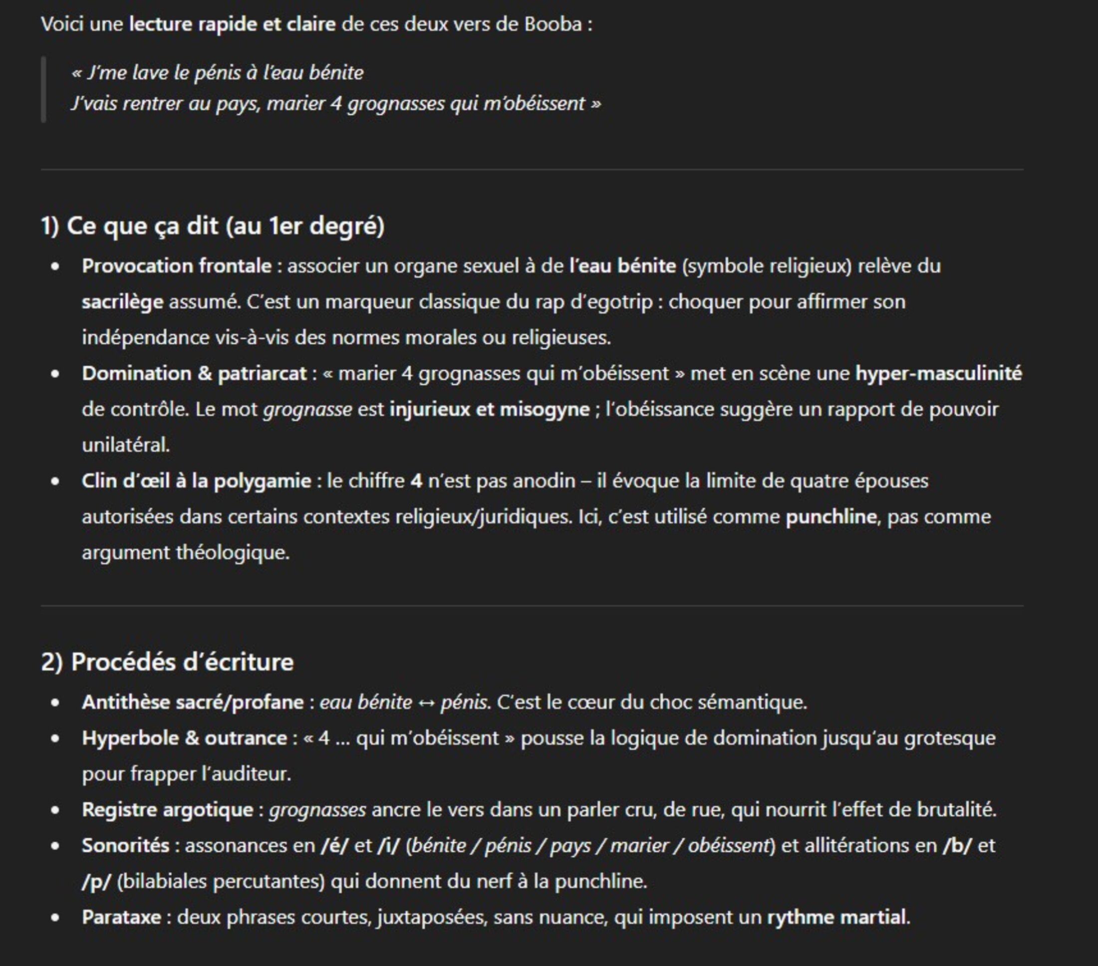 Et j'ai demande a ChatGPT-5-Pro de faire une petite analyse complete concernant ses paroles...