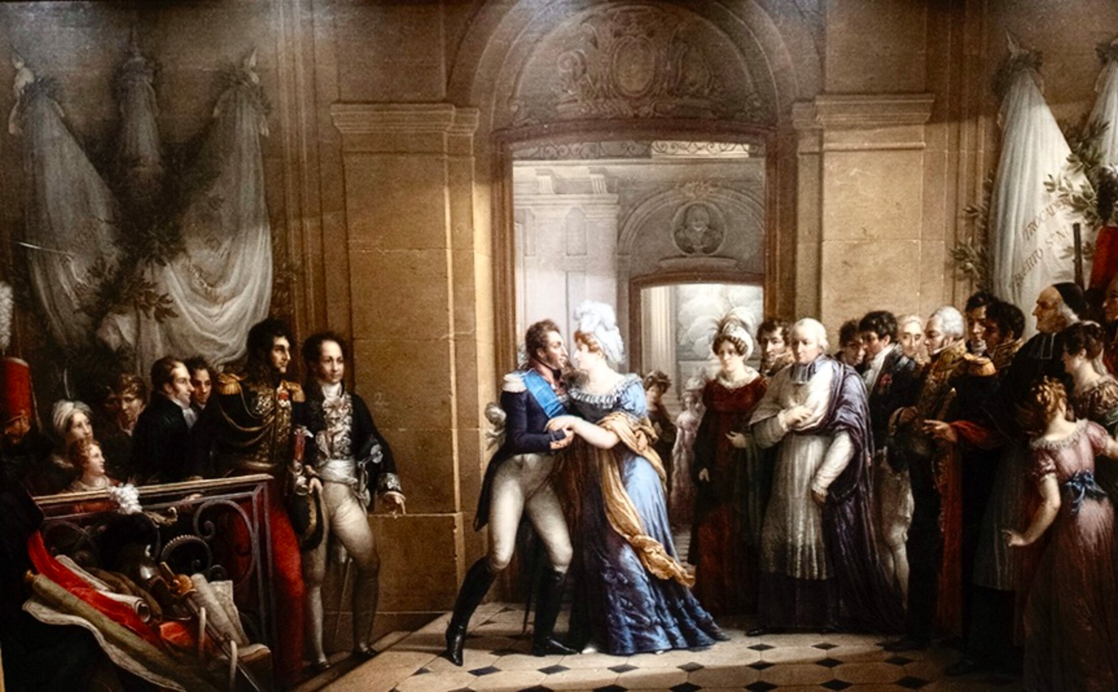 Le caricaturiste de l’époque Victor Ratier croque une duchesse au visage ingrat et autoritaire clairement dominatrice. Napoléon lui-même parle de la Duchesse d’Angoulême en ces termes elle est « Le seul Homme la famille » évoquant son couple où l’époux apparaît un tantinet faible. Dans la nef de la Chapelle et sortie pour la première fois du musée des beaux arts de Chartres , un immense portrait du couple . « Entrevue du Duc et de la Duchesse d’Angoulême « de Garnier en 1826.