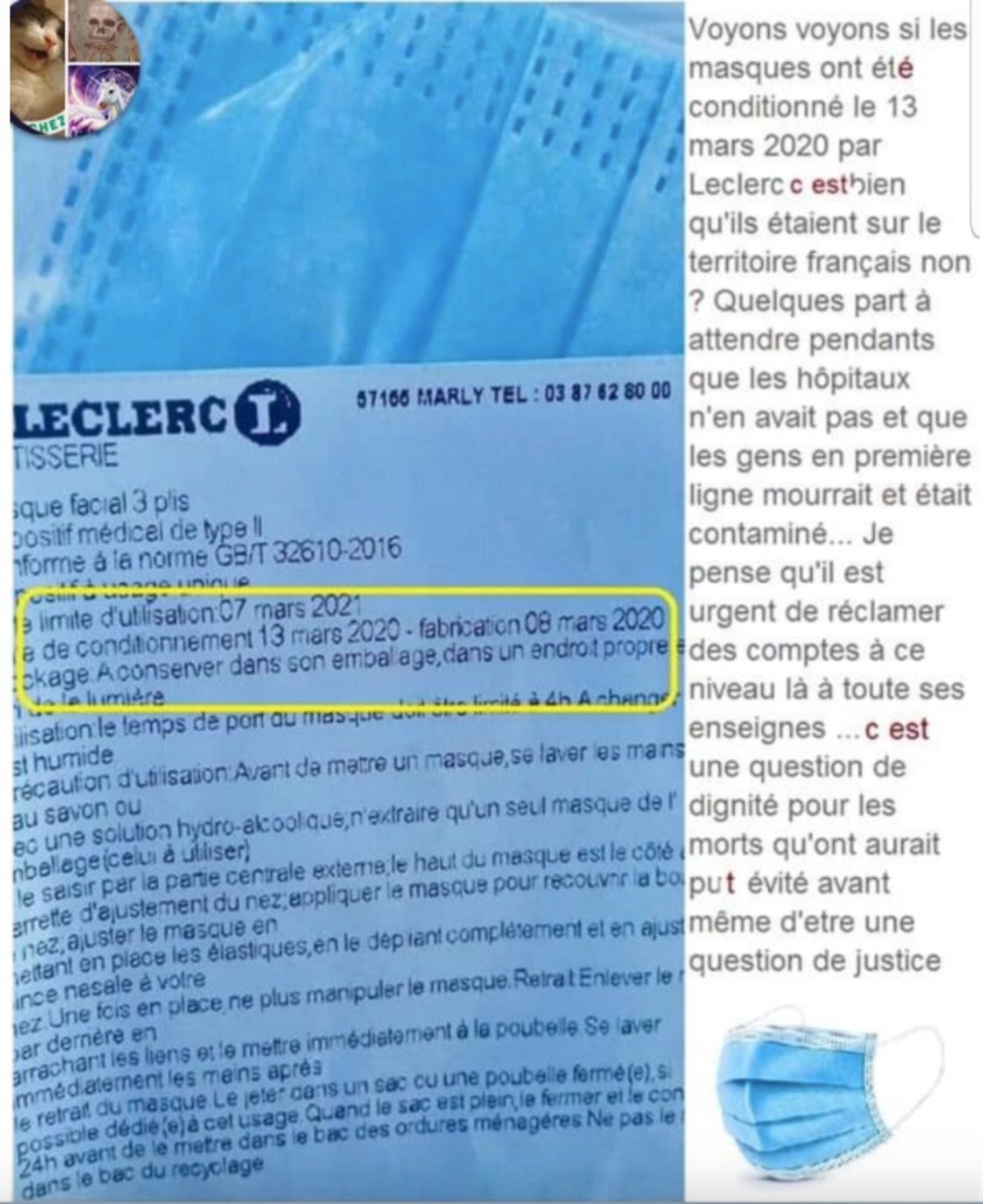 Il y a eu beaucoup de mort. En mars, au pic de l'épidémie, on avait une armée sans masque qui attendait de tomber dans les hopitaux, les chaumieres, les clusters... ailleurs on preparait visiblement l'apres confinement... Leclerc, Carrefour et les autres devront s'expliquer...