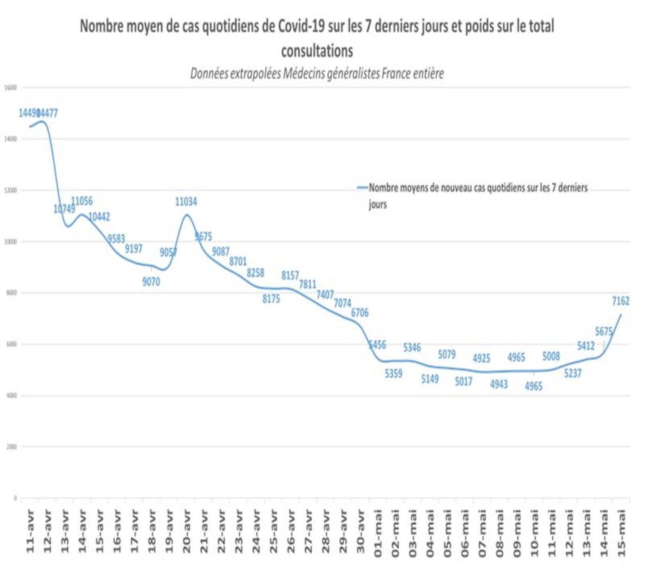 enfin voyons la courbe récente en France, qui montre bien une reprise des nombres de cas en France...