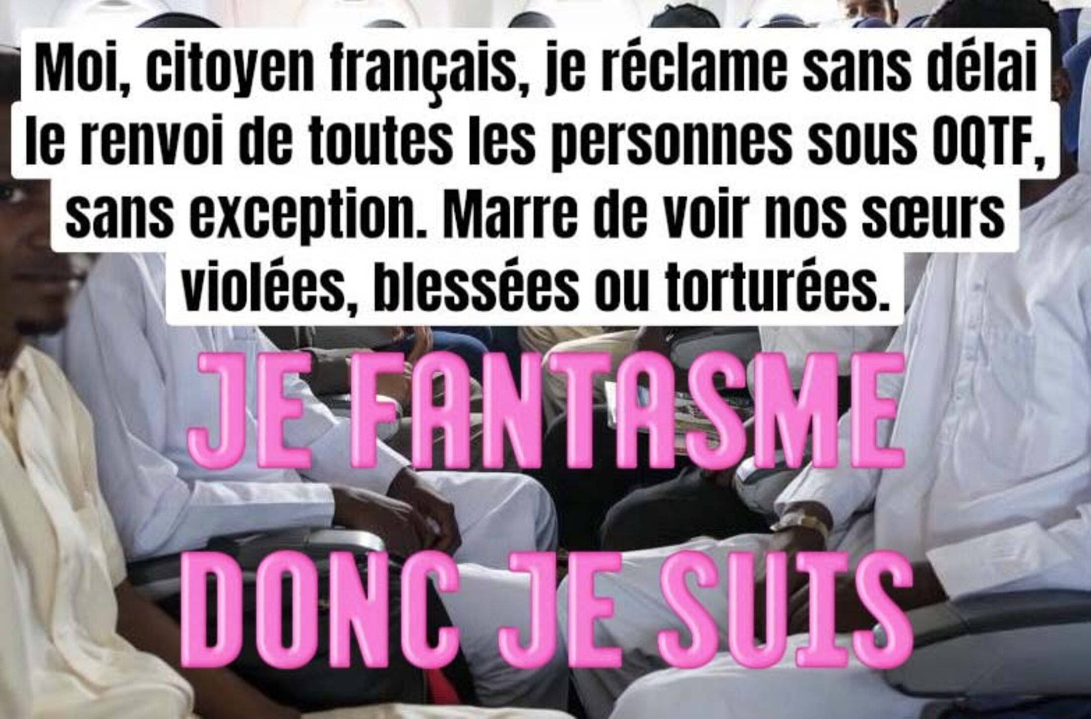 « Moi, citoyen Français, je réclame sans délai le renvoi de toutes les personnes sous OQTF, sans exception. Marre de voir nos sœurs violées, blessées ou torturées. »