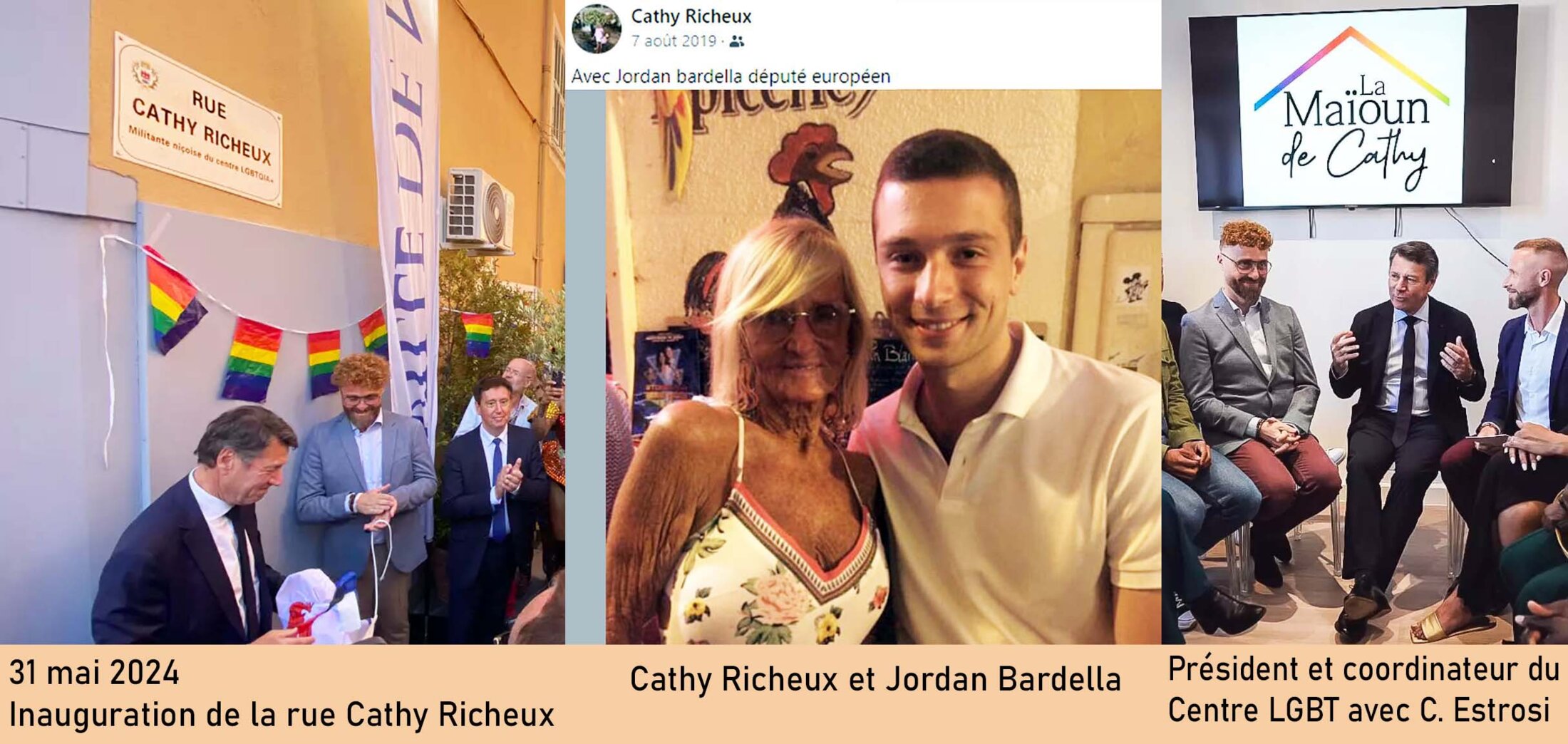 Le Centre LGBT Côte d'Azur a démontré cette année que le manque de compétence peut mener aux plus cocasses incongruités. Sous le patronage de Christian Estrosi, qui participait à la fête avec sa fanfare municipale, la rue où se situe le centre LGBT a été rebaptisée « Rue Cathy Richeux » du nom d'une défunte bénévole connue par une partie de la communauté niçoise, une femme qui s'affichait en 2019 sur les réseaux sociaux photographiée aux côtés de Jordan Bardella (militance ou incompétence ?). Et c'est muni de tracts annonçant la naissance d'un « refuge » nommé « La maïoun de Cathy [Richeux] » que le coordinateur du centre LGBT arpentait la manifestation antifasciste niçoise du 15 juin 2024 sous les yeux attristés de militants de gauche qui cherchaient compétence et cohérence.