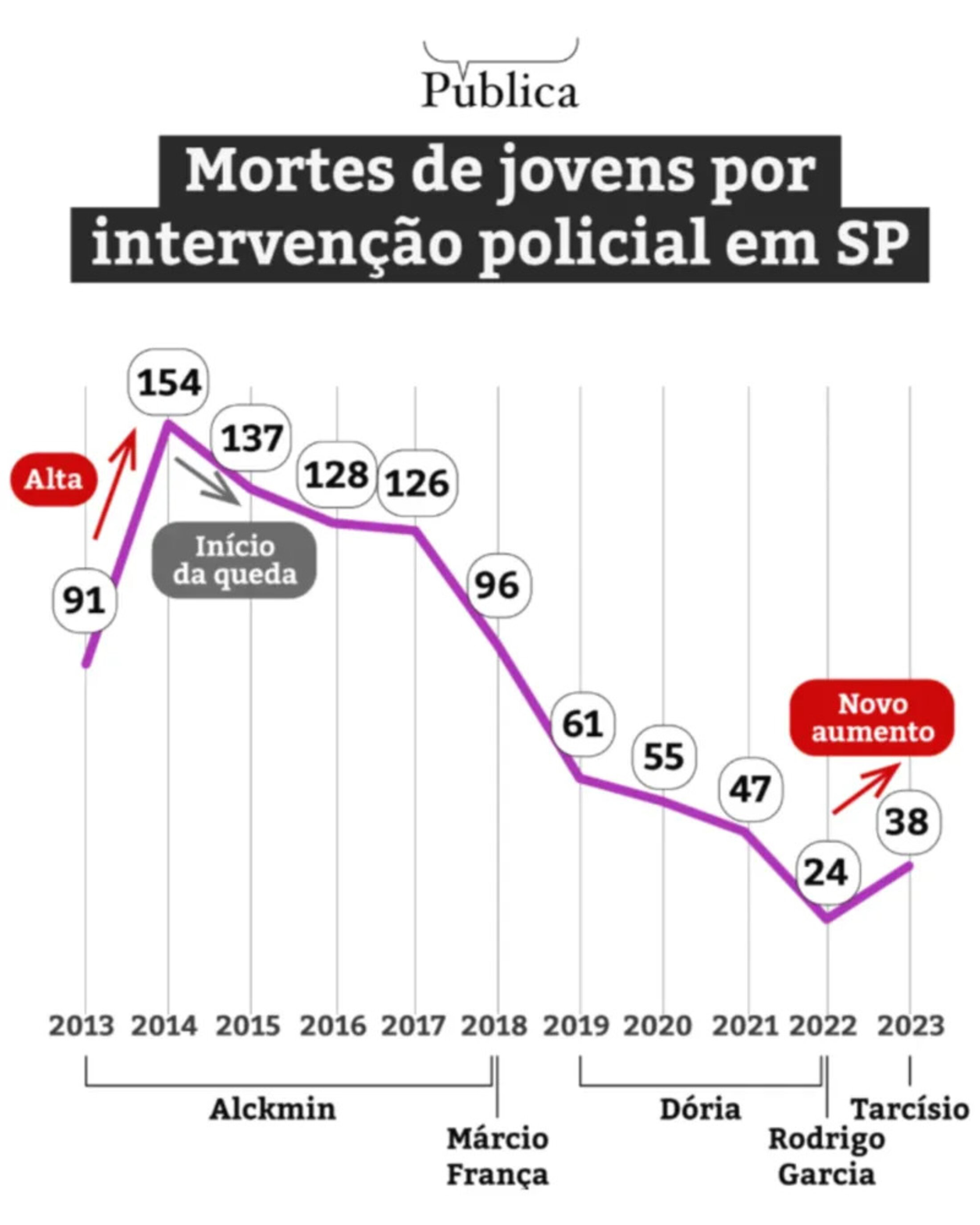 Celui des ministres actuels de la Cour suprême (STF) qui est le plus soutenu par le gouvernement Lula en 2024 a été, auparavant, secrétaire d'Etat à l'Intérieur de l'Etat de Sao Paulo, en 2015 et 2016. Il avait laissé derrière lui de bien plus grandes mers de sang adolescent : 137 et 128 tués par la PMESP, alors sous sa direction.