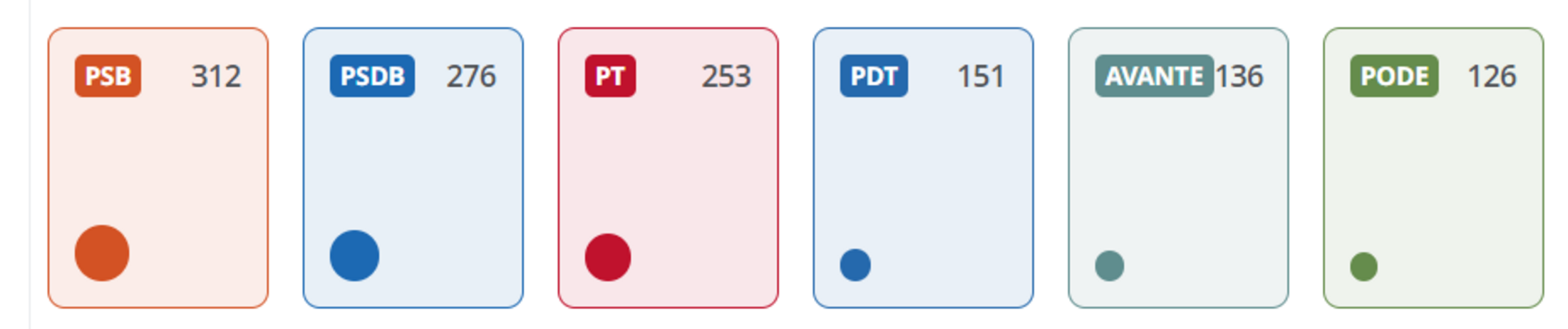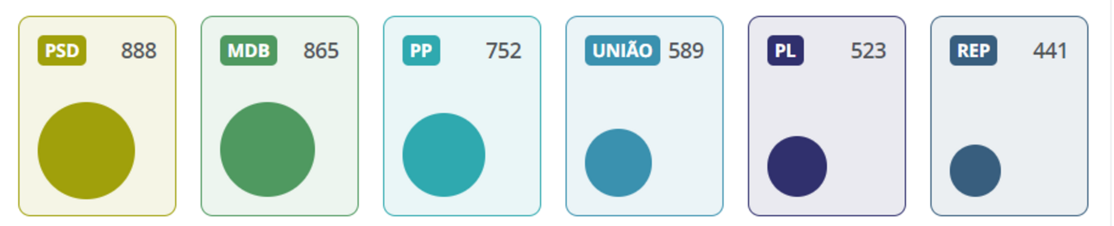 D'un total national de 5.565 municipalités, les cinq partis politiques les plus à droite de l'échiquier national, PSD, MDB, PP, União Brasil et le parti bolsonariste PL ont vu leurs édiles conquérir, dès le soir du premier tour, le dimanche 6 octobre, la tête du pouvoir exécutif de 3.613 villes. En 2020, elle avaient gagné 3.223 mairies.