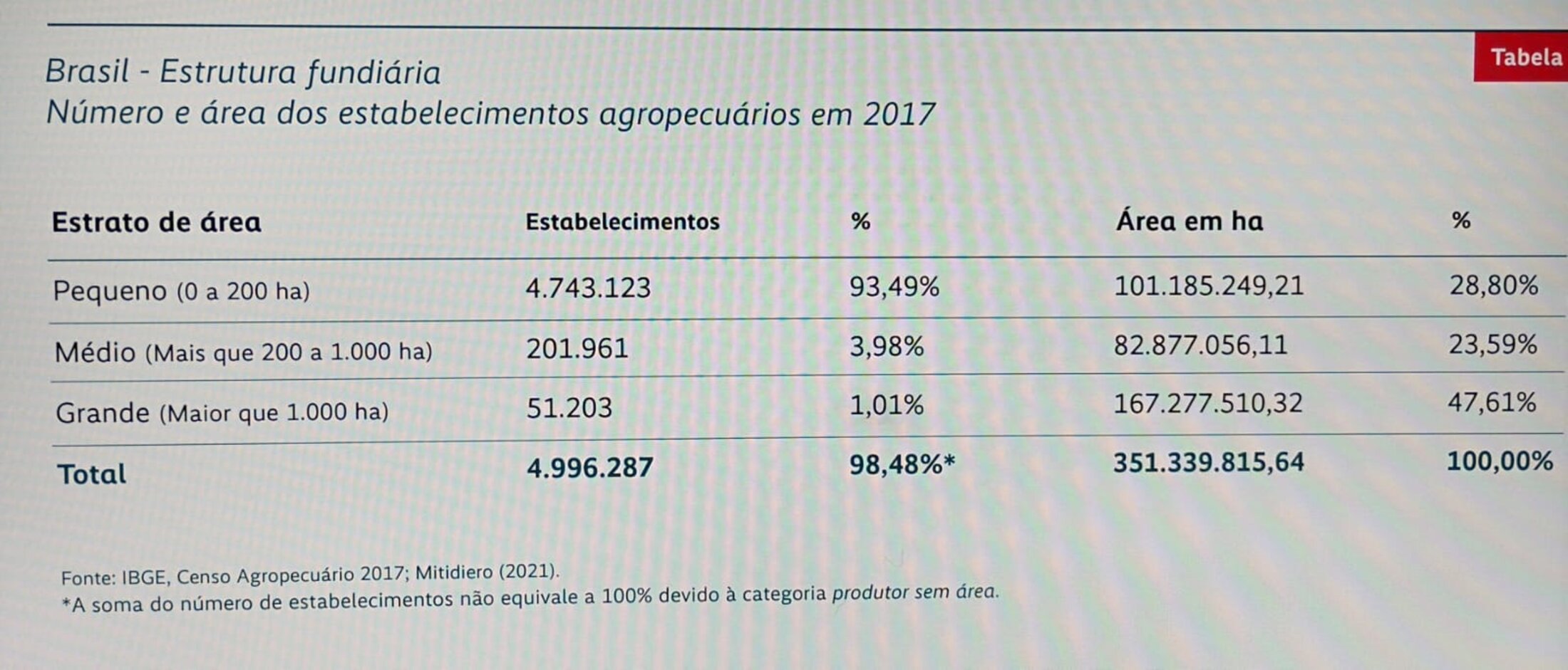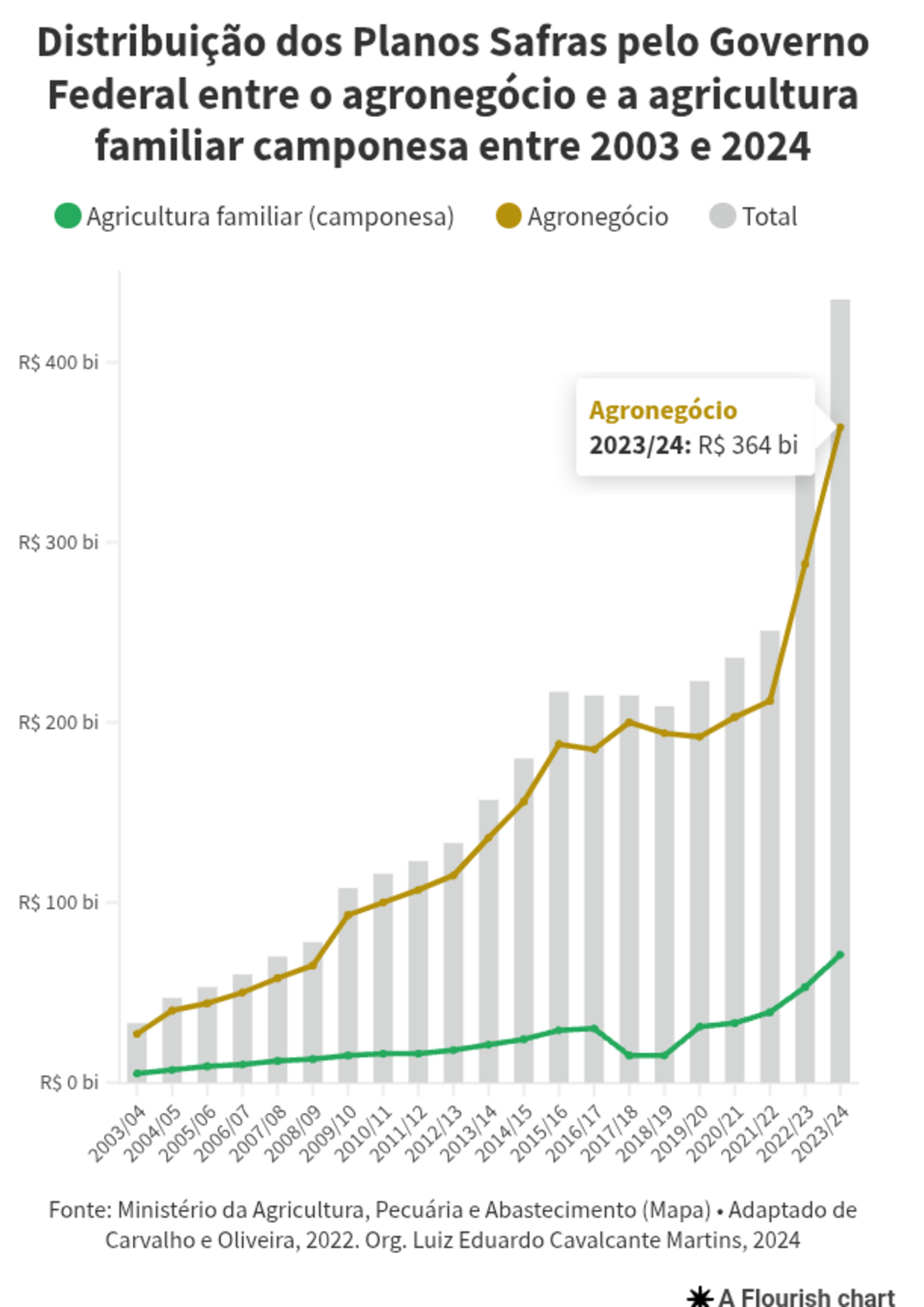Dans le Plan de récolte (2023/2024) du gouvernement Lula da Silva, 435 milliards R$ (77,7 milliards US$) ont été offerts en crédits, dont 364 milliards (65 milliards US$) pour l'agro-industrie et seulement 71 milliards (12,7 milliards US$) pour l'agriculture familiale. « La question est élémentaire : les producteurs orientés vers le marché alimentaire intérieur ne devraient-ils pas bénéficier de crédits plus importants et à de meilleures conditions ? », soulignent les auteurs.
