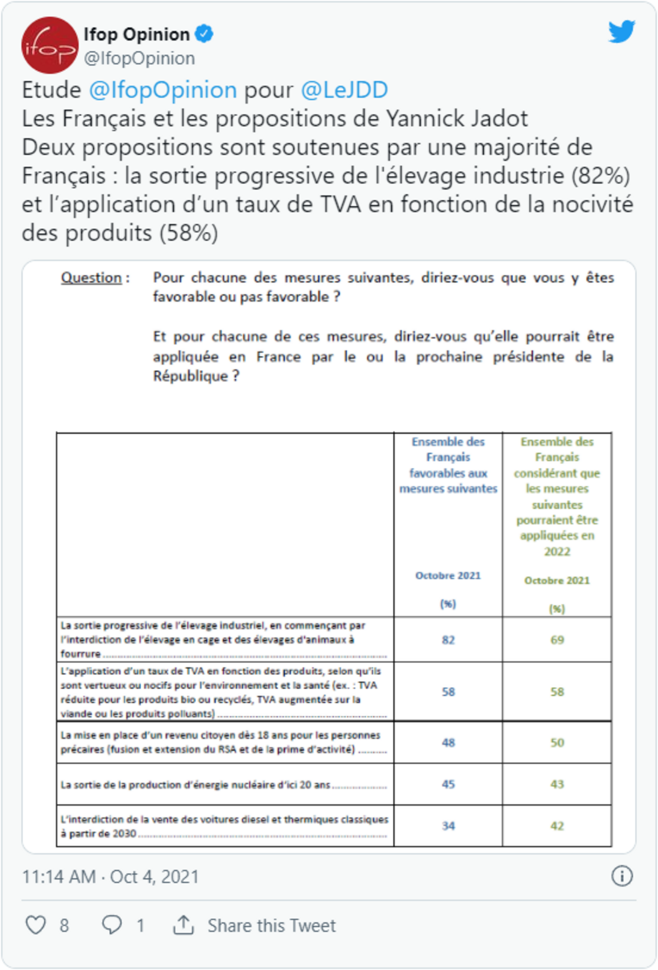 Le sondage d'Ifop a le mérite de souligner que les Français ont pris conscience que les élevages industriels n'étaient pas le modèle souhaité et souhaitable. A cela, il faut également ajouter qu'il faut aller vers une réduction de notre consommation de viande, tant pour notre santé, que celle pour lutter contre le réchauffement climatique.