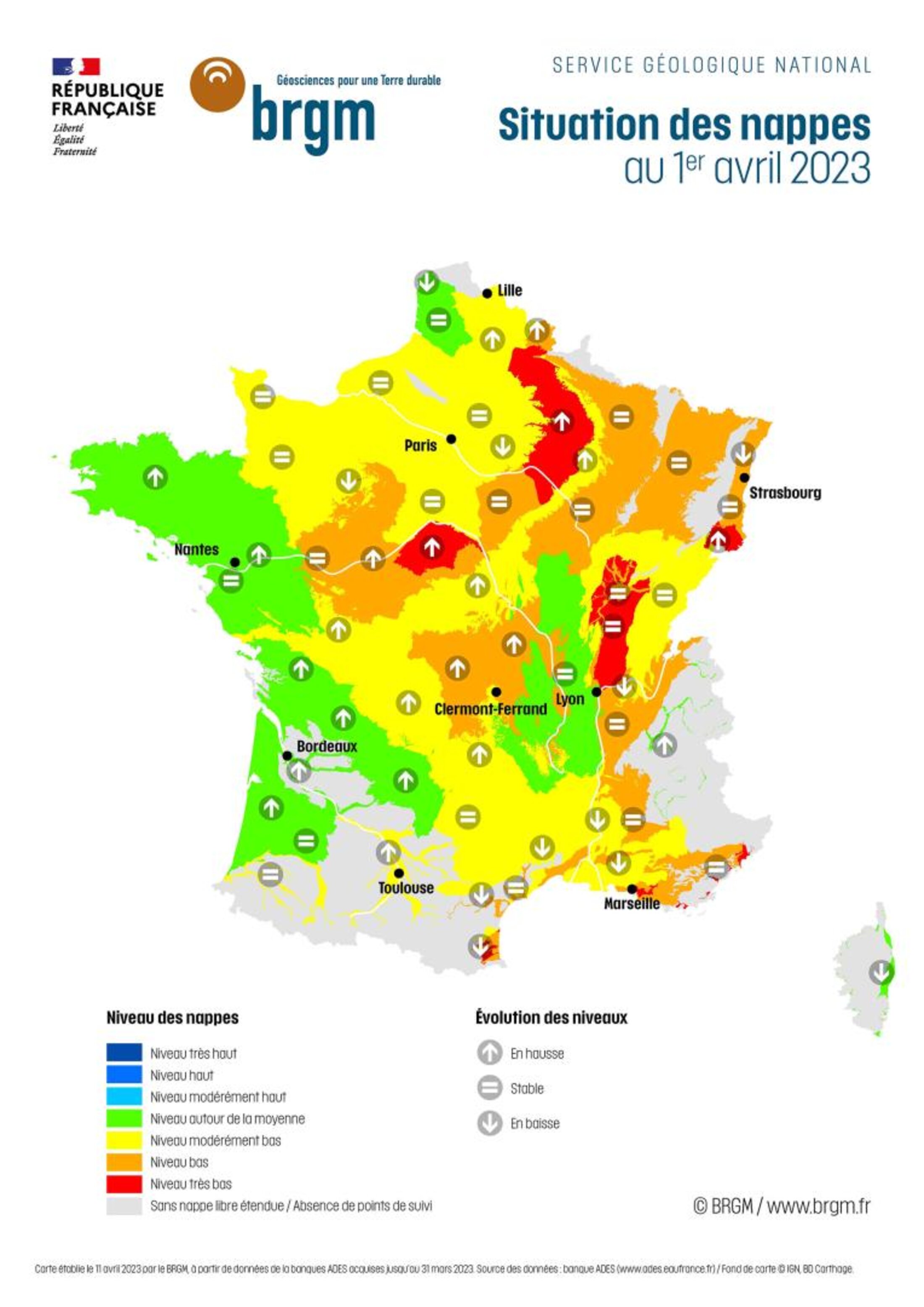 État des nappes d’eau souterraine au 1er avril 2023 :