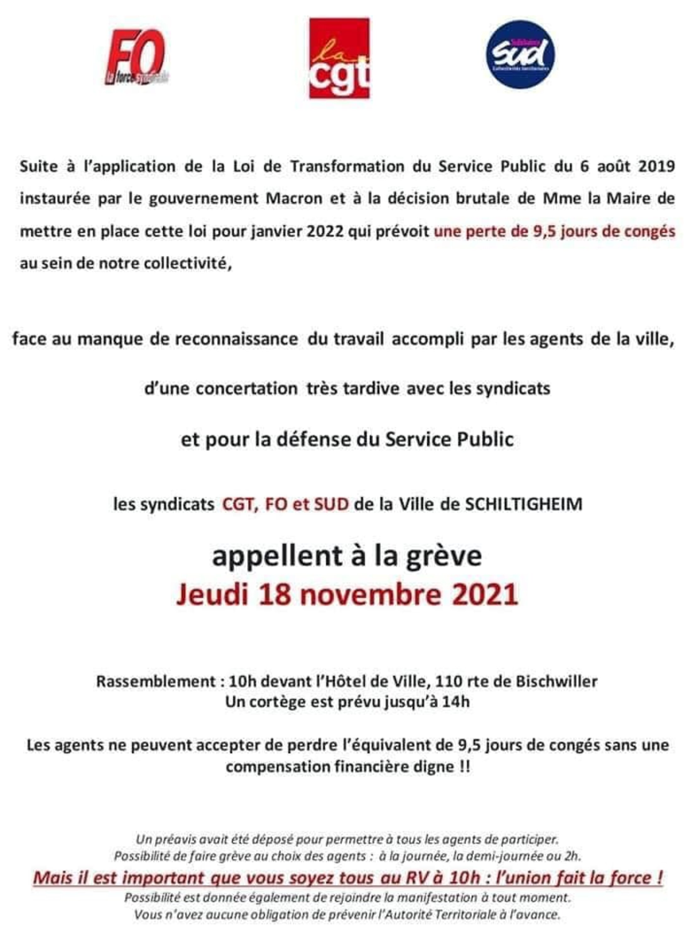Gros rassemblement des employés de la Mairie de Schiltigheim pour la défense des acquis