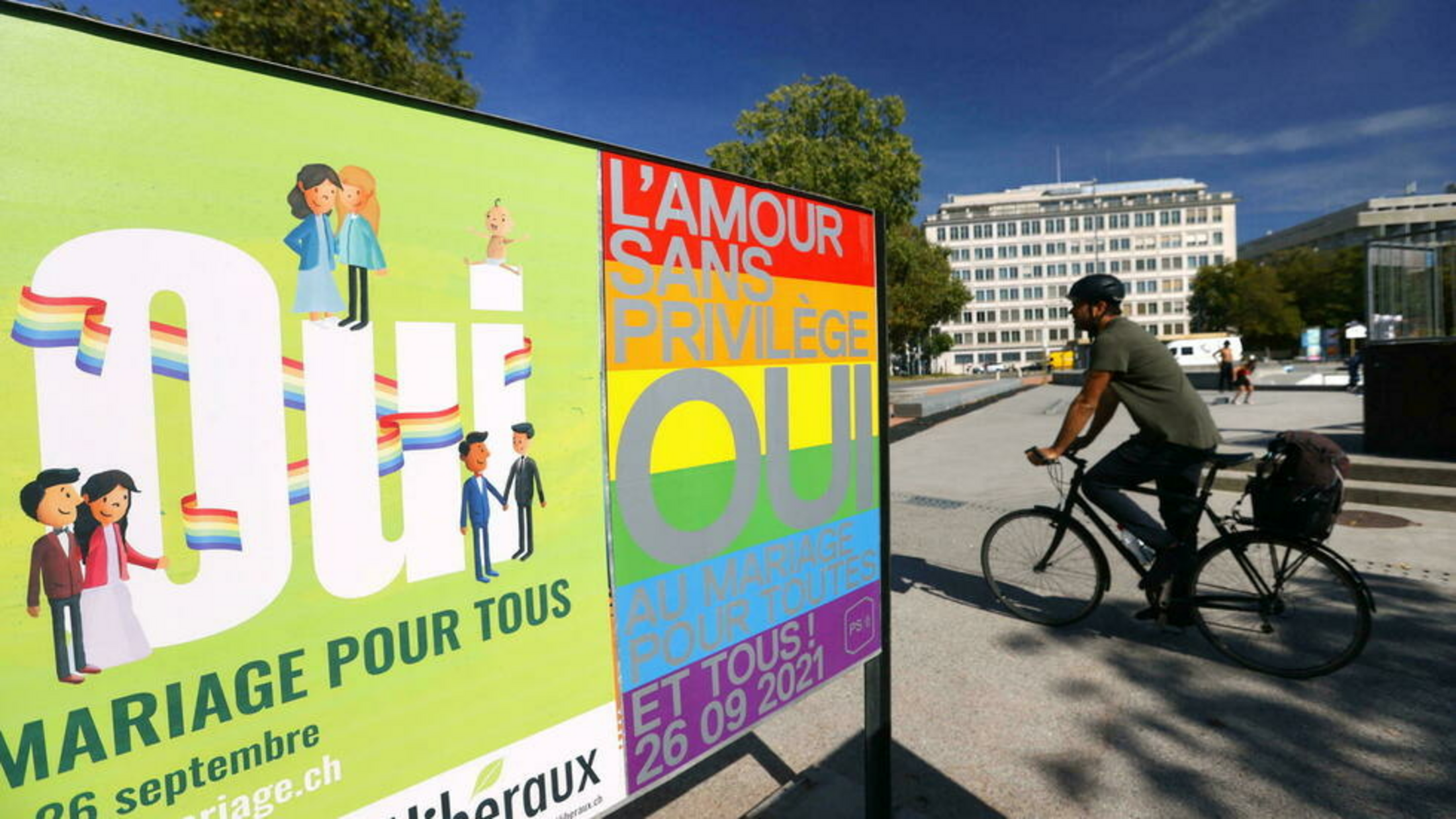 Des panneaux d’affichage en faveur du mariage pour tous, à Genève, en Suisse, le 23 septembre 2021 © REUTERS - DENIS BALIBOUSE