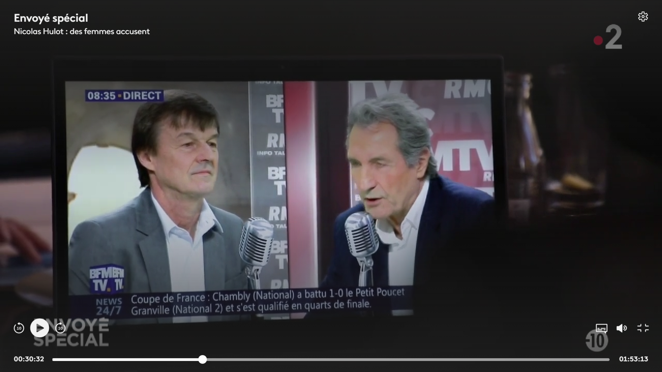 Aujourd'hui, je lis beaucoup de réactions des suites du reportage d'Envoyé spécial de ce jeudi soir. Mais dites-vous que le cas "Hulot" n'est pas isolé, qu'il y a eu d'autres révélations sur d'autres personnalités depuis plusieurs mois et qu'il y en aura certainement d'autres à venir encore, parce que les femmes osent parler de plus en plus. C'est bien. C'est même nécessaire, parce qu'il y a un moment où il faut faire prendre conscience aux hommes que prendre sans avoir l'approbation de l'autre, c'est mal... très mal !