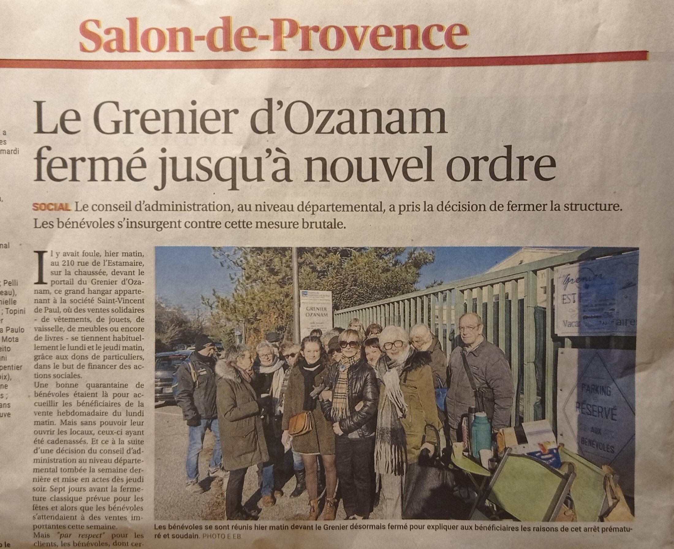 La raison ? Une reprise en main autoritaire et soudaine du conseil départemental de la Société Saint Vincent De Paul, propriétaire du "Grenier d'Ozanam", un entrepôt où se déroulent depuis plus de vingt ans, des ventes solidaires de vêtements, jouets, livres, meubles ou encore vaisselle. Sans oublier le coin "café-sourire" pour se réchauffer les pieds, les mains et le cœur...Tout cela grâce aux dons de particuliers, au dévouement et à l'implication bienveillante de dizaines de Bénévoles.