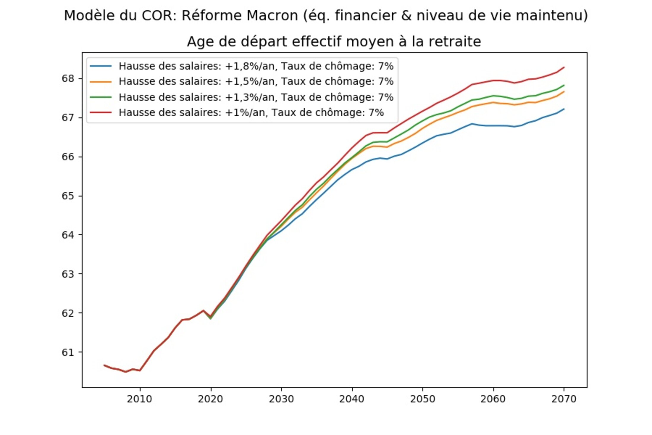 Satisfaire ces promesses du gouvernement sans toucher au taux de cotisation ne peut néanmoins se faire qu'au prix d'un départ très tardif à la retraite: autour de 68 ans en 2070.