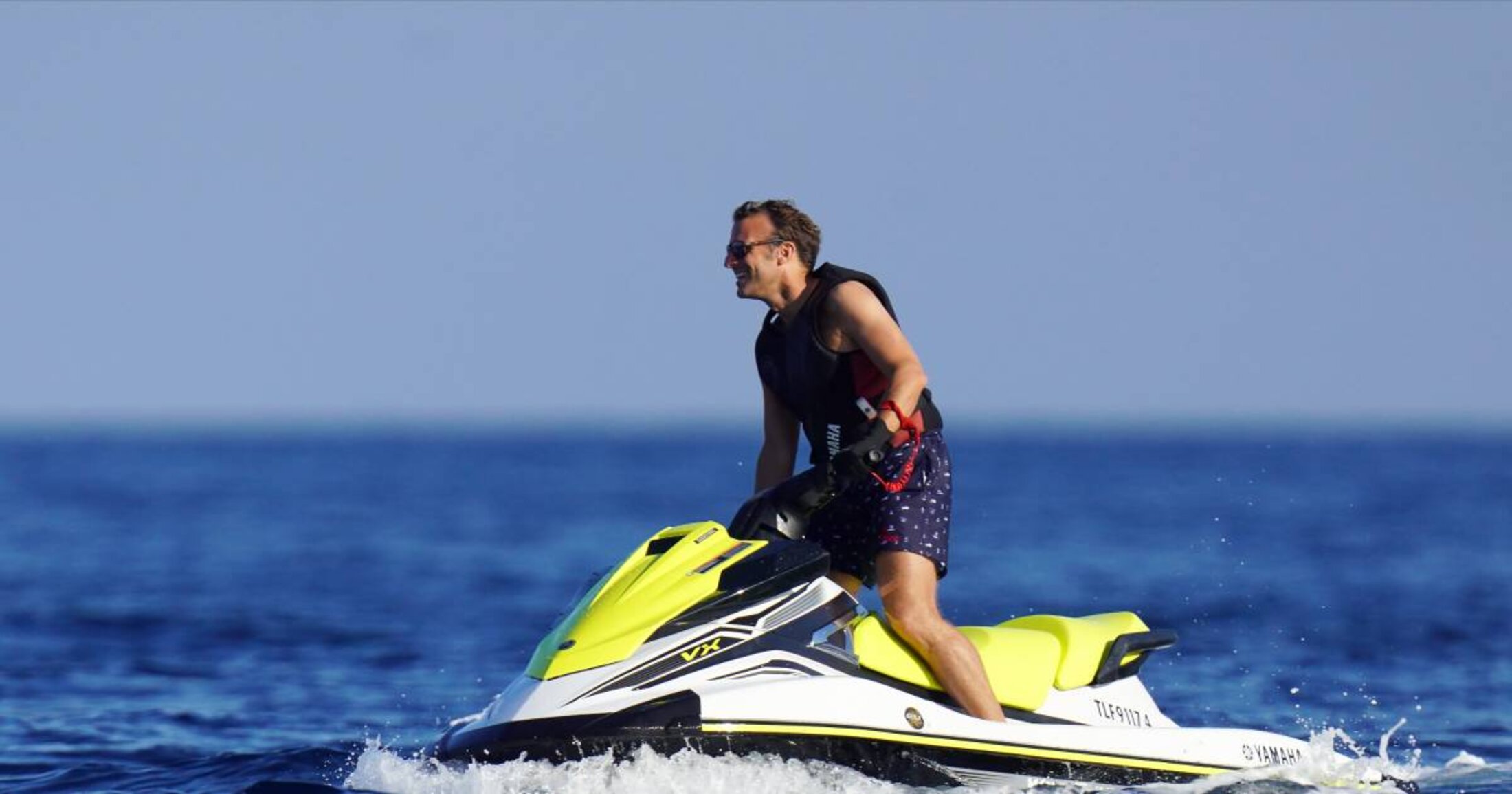C'est sur les rives de la Méditerranée qu'il nous démontre de manière aussi spectaculaire que pétaradante qu'il se moque comme de sa première chemise, des efforts d'économie énergétique qu'il demande à ces salauds de pauvres. Lui, il chevauche pour son seul plaisir, pour les sensations que la vie politique semble ne plus lui offrir, la griserie du jet-ski, le symbole absolu de la folie de cette société.