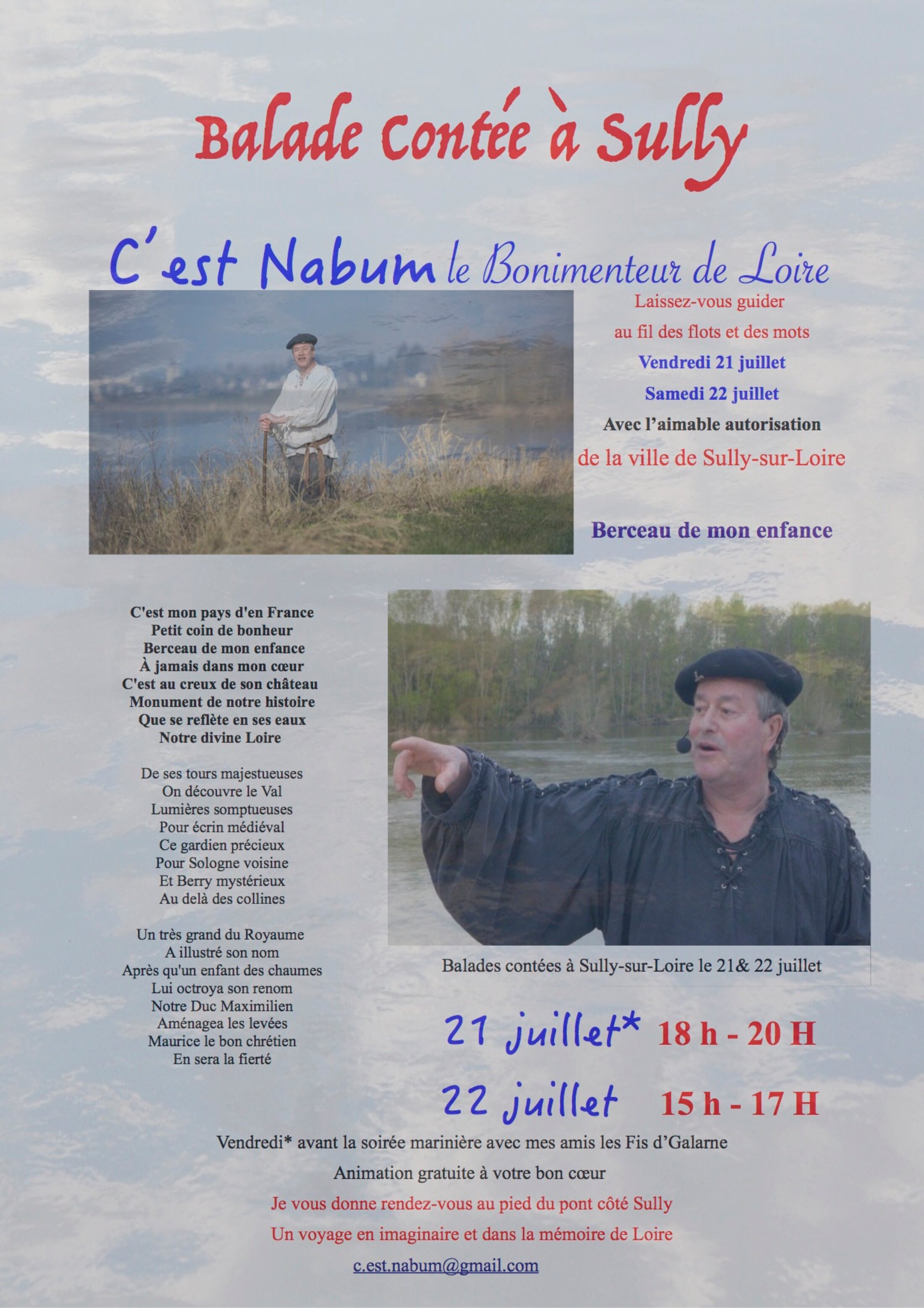 La rivière avait été notre nourrice. Je vous l’ai souvent répété. Vous comprendrez aisément maintenant que c’est par le truchement d’une laitière qu’elle mérite cette dénomination. Je referme une fois encore la boîte à nostalgie de mon pays d’en-France. Je vais y conter pour la première fois ce vendredi et ce samedi. J’espère que mes souvenirs feront écho chez quelques vieux sullylois qui viendront à ma rencontre.