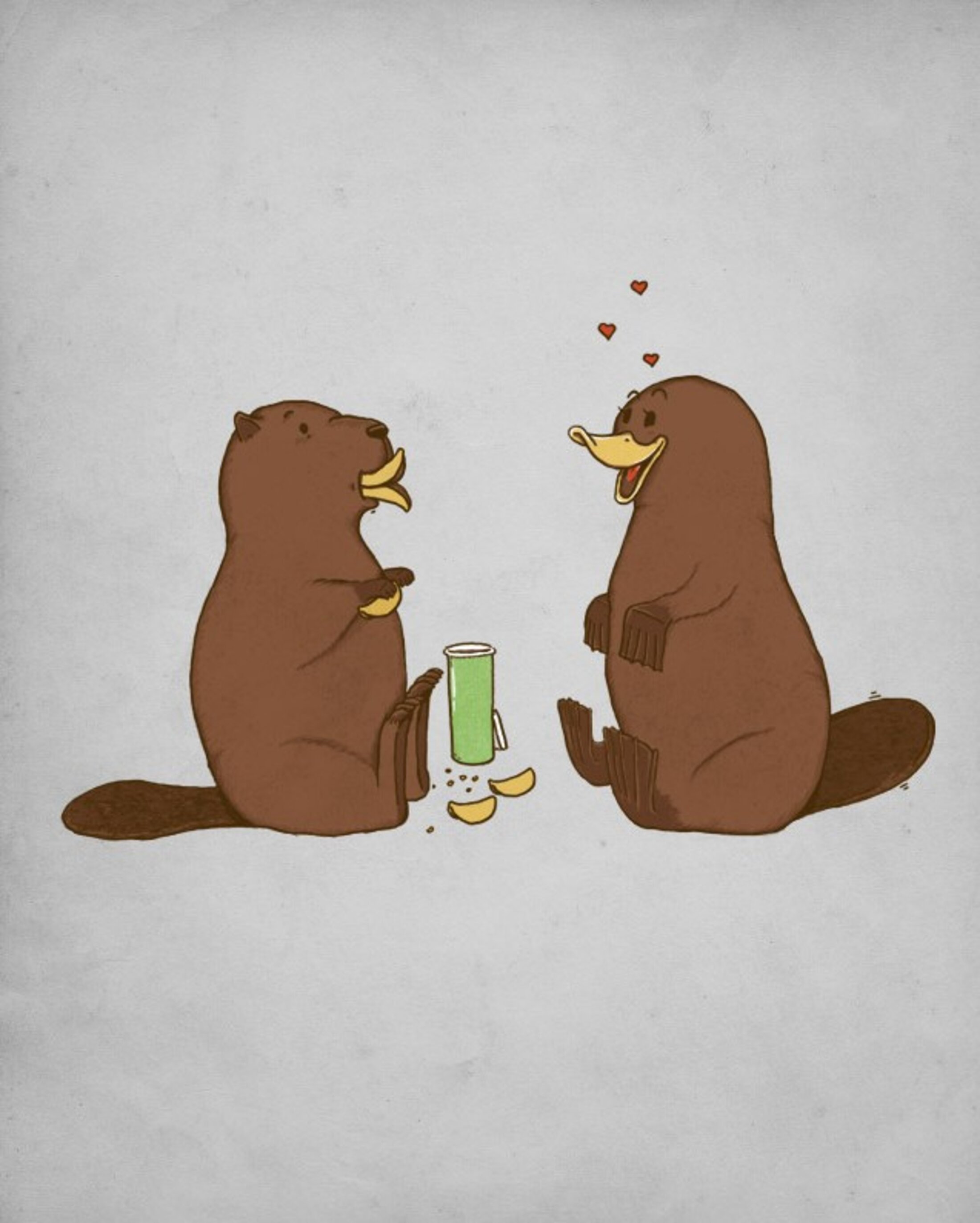 Au sortir des ateliers du grand créateur, l'ornithorynque et le castor eurent étrangement l'impression que Dieu avait la tête ailleurs en les sortant de son laboratoire. Pour le premier, ça ne faisait aucun doute et le pauvre risquait fort de se trouver le bec dans l'eau ce qui mit la puce à l'oreille du second qui en se retournant, comprit qu'il devrait faire de même.