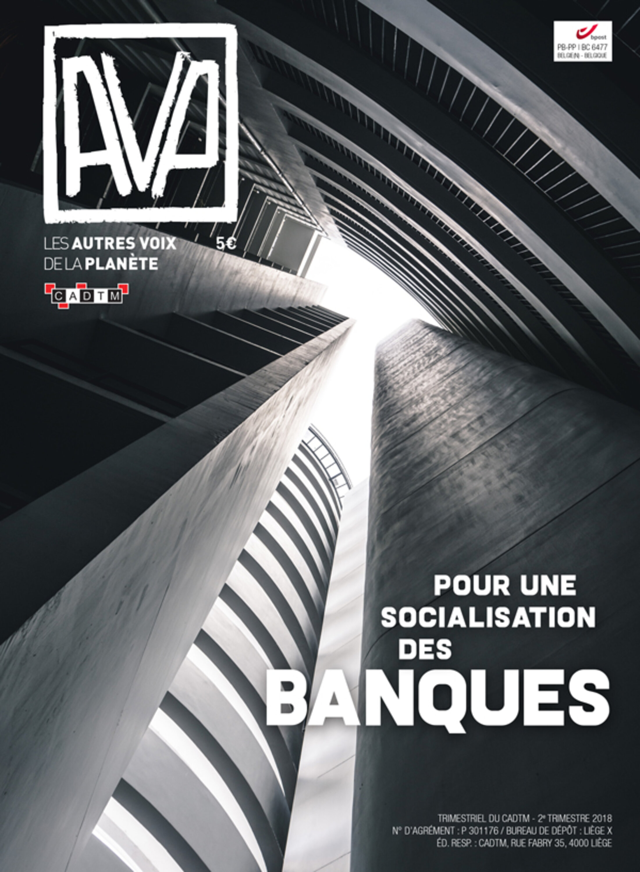 Pour réfléchir à ces questions, apporter des éléments de réponse et contribuer au débat, le CADTM publie un nouveau numéro de sa revue, Les Autres Voix de la Planète (AVP) intitulé : "Pour une socialisation des banques". Au menu de ce dossier de près de 100 pages : Quel est le rôles des banques privées ? Que s’est-il passé depuis 10 ans dans la finance, que de nombreux politiques et banquiers promettaient de réguler ? Quelles alternatives existent déjà et comment aller plus loin ? Quelques exemples d'actions historiques concernant les banques, mais aussi : Pourquoi la socialisation du secteur bancaire est-elle préférable au système bancaire privé actuel ?