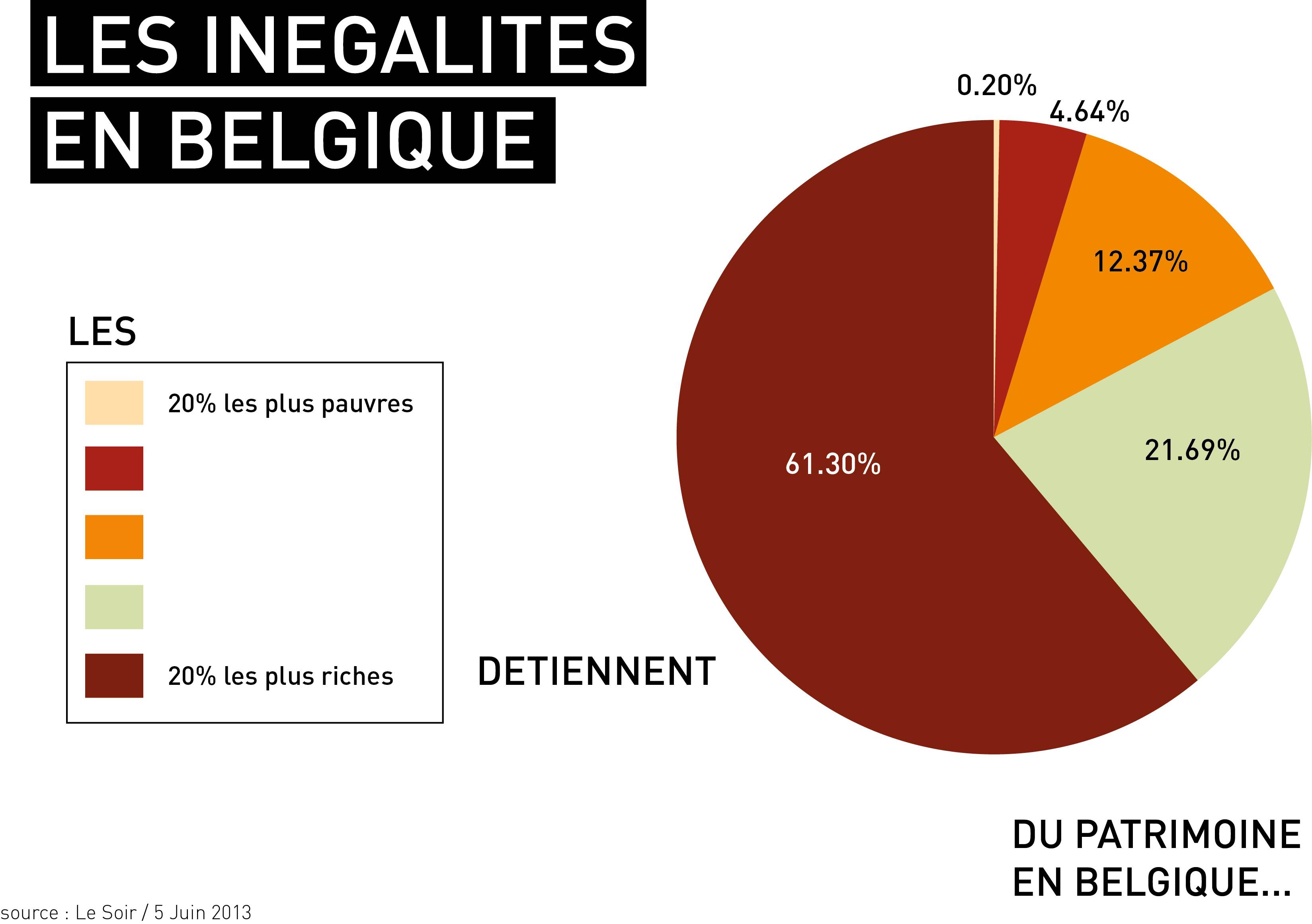 À toute fin utile, rappelons qu'en Belgique, les 20% les plus riches possèdent 61,2% du patrimoine total (et 52% des revenus), alors que les 20% les plus pauvres en possèdent 0,2% (et 3,5% des revenus)23...