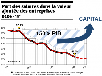 Nous pourrions continuer cette liste, mais ce qui importe ici est que le fait d'utiliser une pyramide des âges pour convaincre du caractère insoutenable d'un système de pensions n'est pas innocent, cela sert des intérêts bien particuliers. En effet, ce qui détermine le caractère « soutenable » de l'économie d'une société (et de son système de pensions), ce n'est pas son rapport d'actifs sur les (prétendus) inactifs mais (1) sa productivité (à différencier de « productivisme », évidemment), (2) son taux d'occupation dans la population et (3) sa répartition des richesses produites en son sein. Notre société a déjà vécu avec une proportion bien moindre d'« actifs » (et avec des moyens de production bien moins efficaces), et on n'entendait pas ces discours incessants sur l'excès de population « dépendante »7. Une société comme celle d'aujourd'hui avec plus d' « actifs » et une productivité beaucoup plus forte devrait avoir une facilité déconcertante à financer des pensions convenables, et pourtant... Le problème se situe ailleurs : dans la capacité du patronat à gérer selon son bon vouloir le taux d'occupation de la population (or, le but de celui-ci n'est pas de créer de l'emploi mais de faire du profit) et dans la répartition des richesses qui se caractérise par un accaparement toujours plus grand de celles-ci par le capital. La part des salaires, et donc également du salaire socialisé comprenant les pensions, dans la richesse collectivement produite a perdu plus de 10 points depuis 1975 - et d'ailleurs nous sommes « en crise » depuis lors. Les richesses produites par les travailleurs-euses n'ont pas cessé d'augmenter ces dernières décennies, et pourtant le retour vers ceux/celles-ci n'a pas cessé de diminuer il n'y en aurait pas assez pour financer les pensions... ? C'est bien qu'elles sont allées quelque part. Le soi-disant gouffre budgétaire qu'induit le « vieillissement de la population » pourrait en fait être résolu par une augmentation de moins de 2% des salaires ! Et si le but est réellement d'augmenter le rapport « actifs » avec emploi/« inactifs » sans emploi, pourquoi l’État ne met-il pas en place une réduction collective du temps de travail (avec embauches compensatoires et maintien des salaires) ? Parce que cela c'est s'attaquer directement à la répartition des richesses produites collectivement, au capital, et donc impossible. Non, la seule solution c'est de faire travailler la population plus longtemps, histoire d'augmenter la pression sur les salaires (et tant pis pour le taux de chômage actuel de - officiellement - 22% chez les jeunes). Le but n'est en effet pas de diminuer le taux de chômage de la population (près de 9%)8 mais d'augmenter le taux d'emploi des 50-65 ans et plus. Comme nous le susurre avec bienveillance Alain Mouton dans son article paru dans le journal Le Vif, la bombe des pensions belges n'a toujours pas été éteinte et la solution paraît donc évidente : il faut travailler plus longtemps. Et de finir avec une belle proposition : instaurer un malus de pension à côté du bonus de pension existant afin de punir les personnes qui arrêtent de travailler avant l'âge légal9.