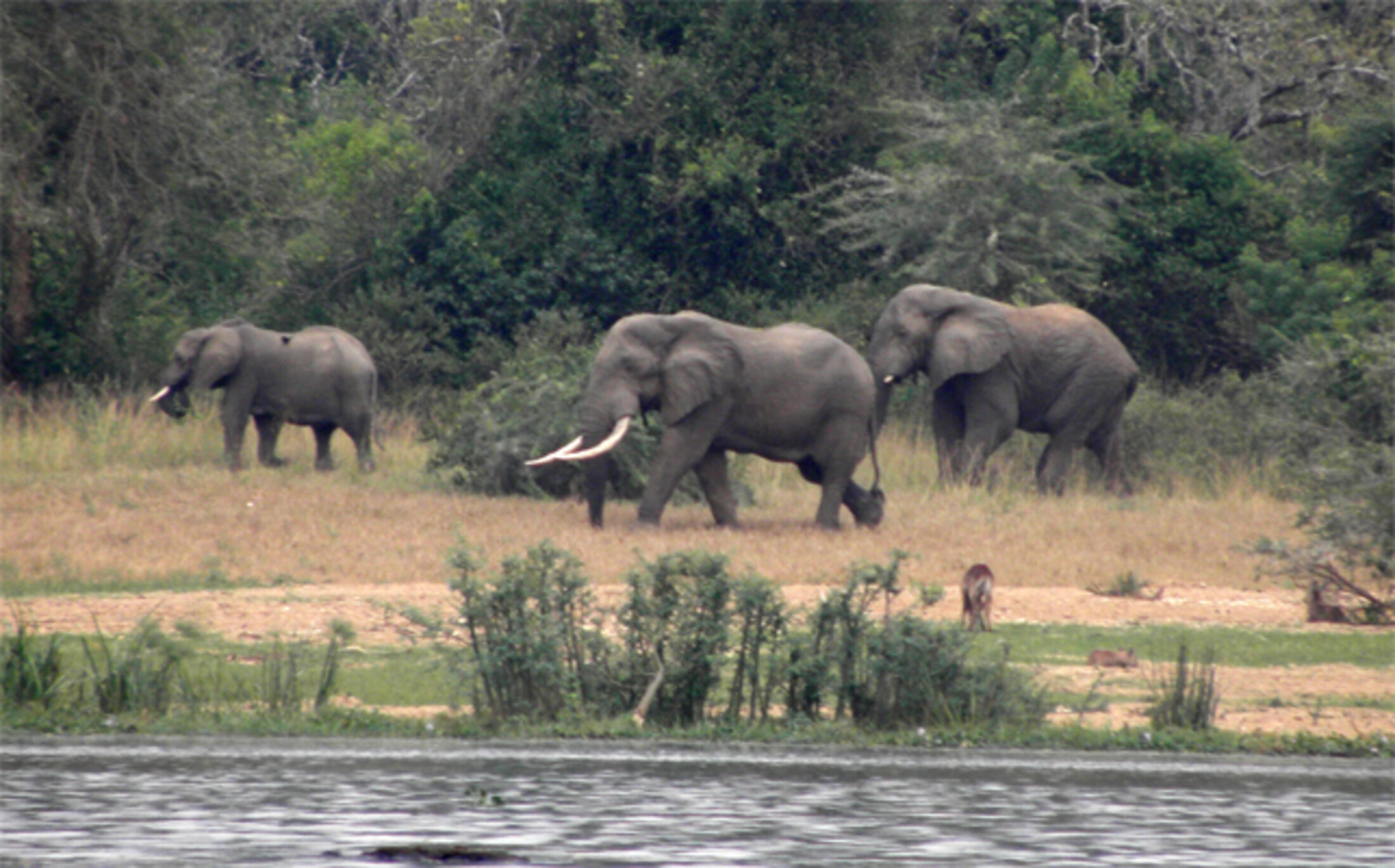 L’autre symbole, emblème de l’Afrique est l’éléphant. Être social, tout comme la girafe. Nous l’avons aperçu, la veille du périple sur les pistes, au loin, quand nous cherchions l’hippo. Sans doute venait-il boire de l’eau sacrée du Nil.