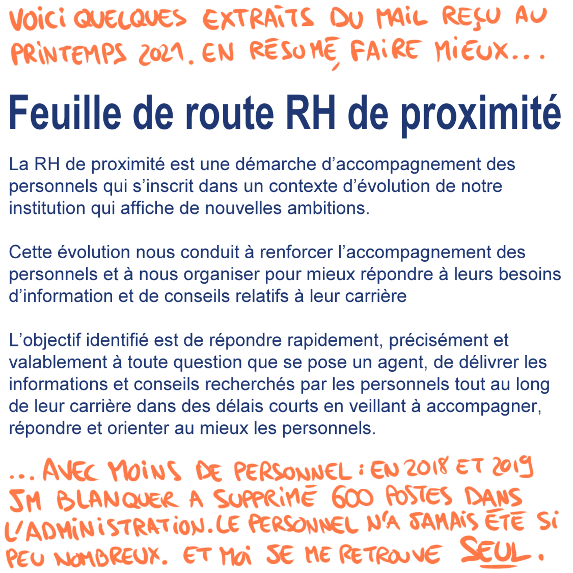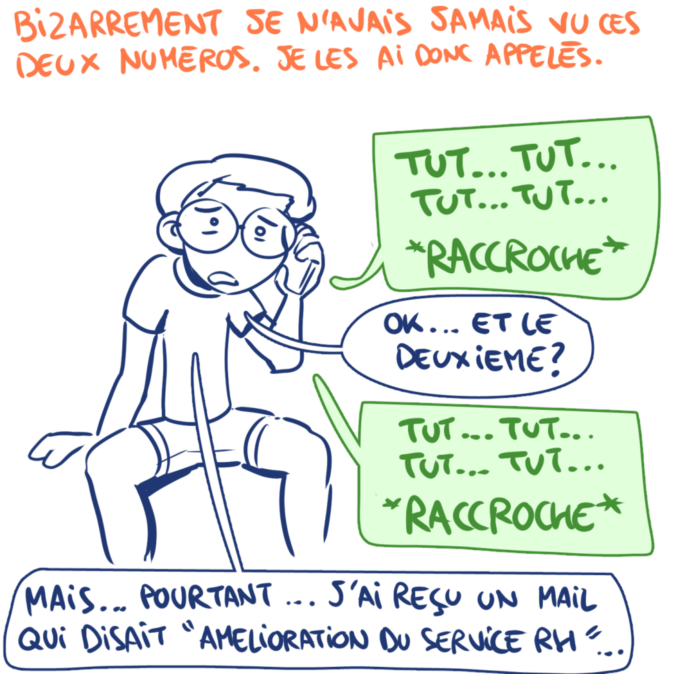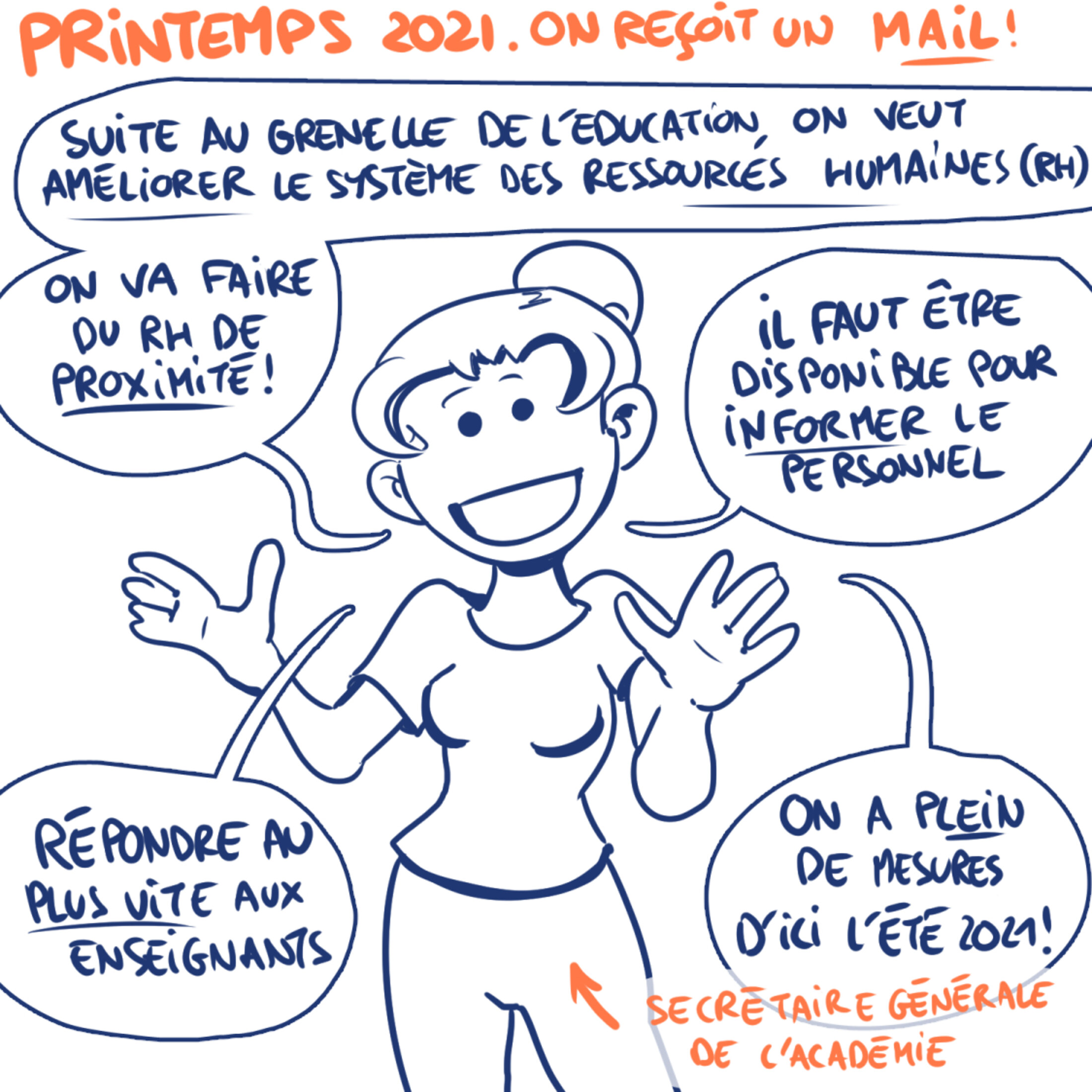 (Bien sûr la liste des démarches décrites ci-dessus n'est pas exhaustive : j'ai essayé de contacter plus de monde (gestionnaire i-prof ; proviseur de mon établissement de RAD ; contact de personnels RH divers et variés...). Heureusement aussi, des collègues se sont manifestés pour m'aider et me soutenir, mais ils n'en savent en général pas plus que moi ! )