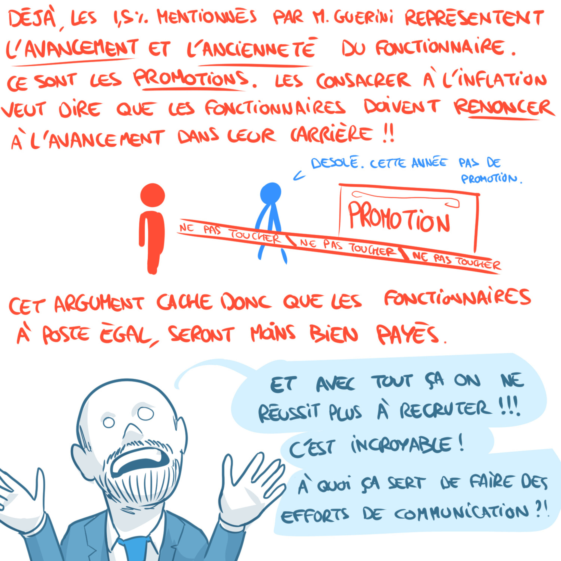 3,5 % d'augmentation du point d'indice, c'est bien moins que l'inflation de 5,5%. Mais il y a pire, il y a la communication du gouvernement.