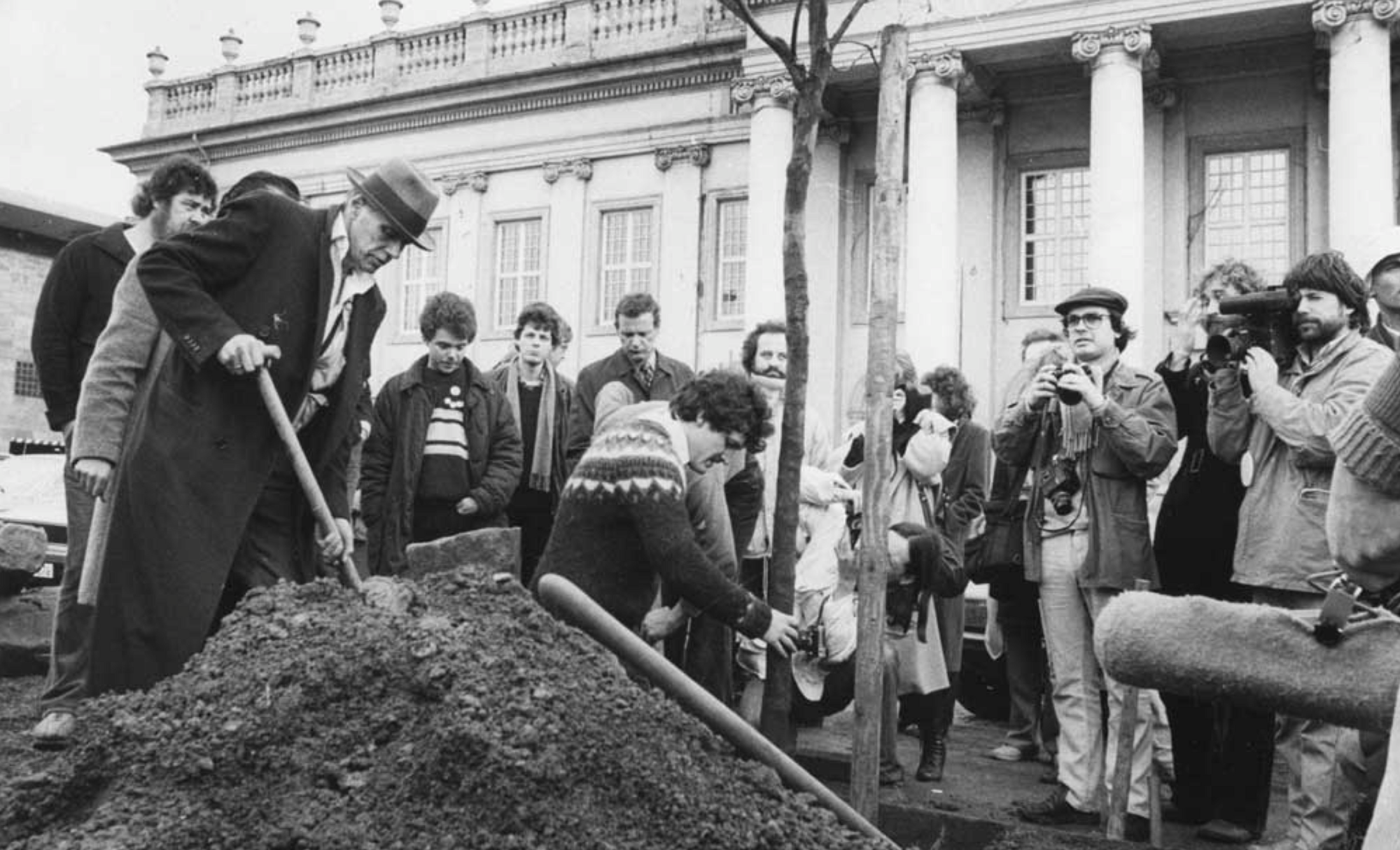 Aidé par des volontaires, l’artiste plante à Kassel et dans ses environs 7 000 chênes, chaque arbre planté étant désigné par un bloc de basalte (une roche débitée dans une carrière locale). Cette folle entreprise aboutit à un formidable chantier de replantation, exemplaire par l’esprit, et pionnier.