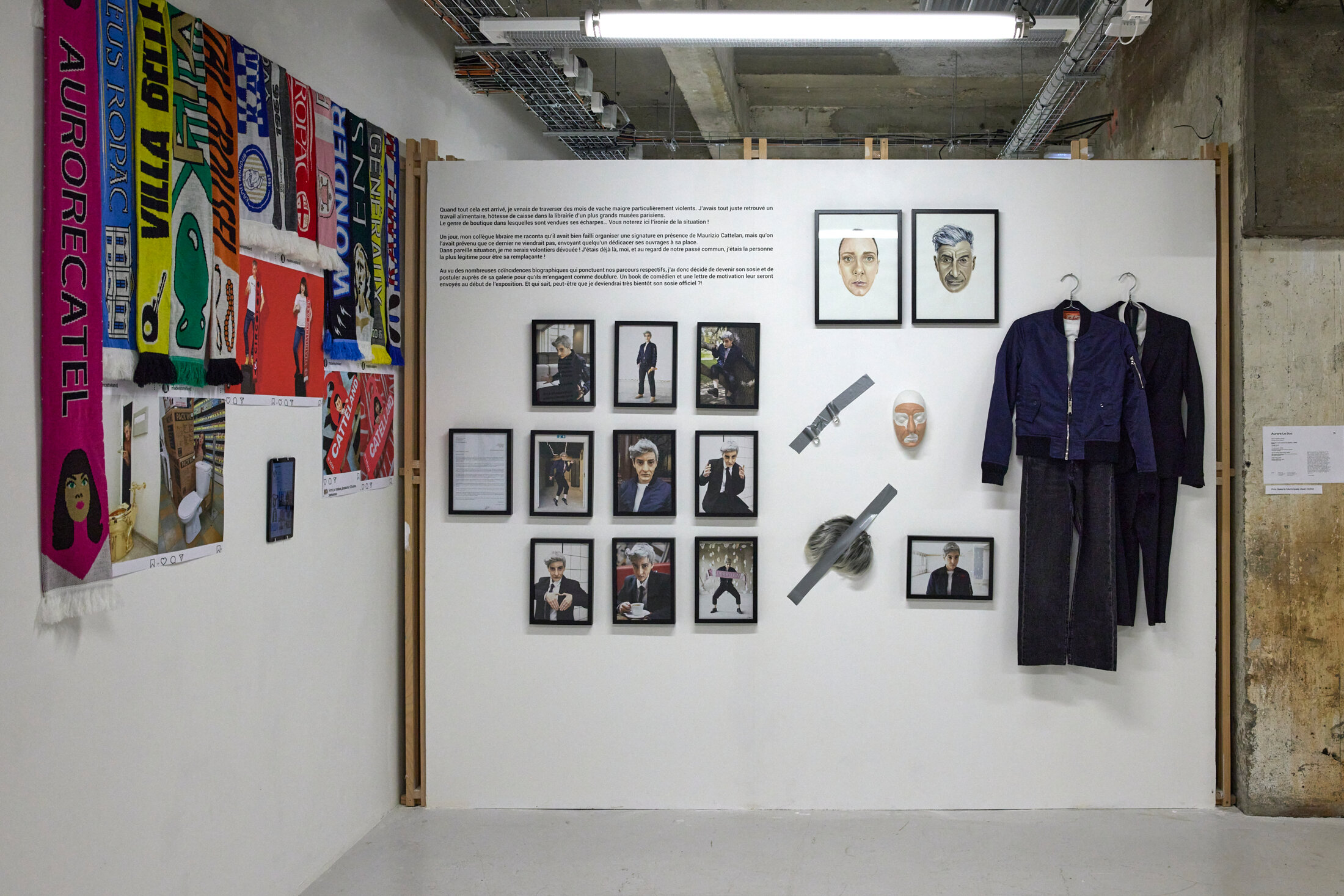 Cattelan n’aime pas les interviews, donc il envoie souvent des personnes faire ses interviews à sa place et les journalistes pensent qu’ils parlent à Cattelan. Et donc moi je me suis dit : "Attends, le hasard de la vie fait que mon deuxième prénom Catel ressemble à Cattelan. Ma mère est femme de ménage, comme la mère de Cattelan, donc on vient du même milieu social, et lui c'est quelque chose qu'il revendique beaucoup. Son statut "d'ancien enfant des rues de Padou" qui n'est pas allé à l'école. Ce côté “Je suis un pauvre qui a réussi”. Dans mon cas, je suis pauvre parce que je viens d’un milieu social ouvrier et que je n’ai pas réussi. Mais malgré cela, on partage un même parcours. J’ai une partie de ma famille qui vient d'Italie, à peu près de la même région que lui. Lui, il vient de Padoue, ma famille vient de Udine.
