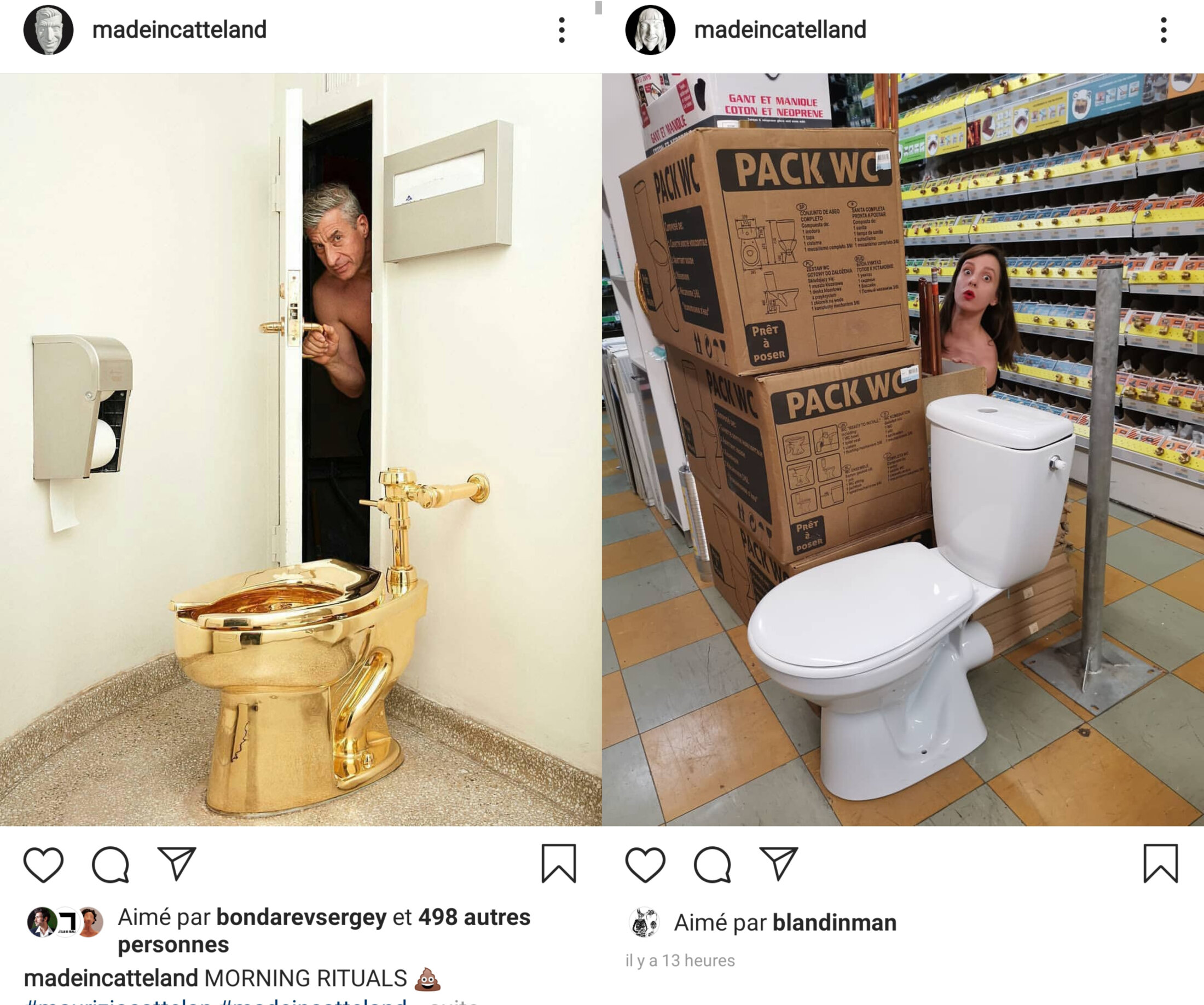 À ce sujet, la directrice de la librairie du Centre Pompidou m’a dit “Vous savez Aurore, je suis passée à la Galerie Perrotin la dernière fois. Les écharpes de Cattelan sont très belles. Mais par égard pour vous, je ne vais pas en prendre.”. Je lui ai répondu “Oui, si vous ne voulez pas que je brûle votre librairie, il ne vaut mieux pas les prendre effectivement.” . Bref, j’ai lancé ce compte instagram, j’ai eu de très bonnes critiques, même Perrotin a liké ma publication sur mes supporters de galeries. Il est bien au courant que j’accuse l’un de ses artistes de plagiat. Mais ça va, il a l’air de bien le prendre. Finalement, j’ai eu une idée de vengeance.