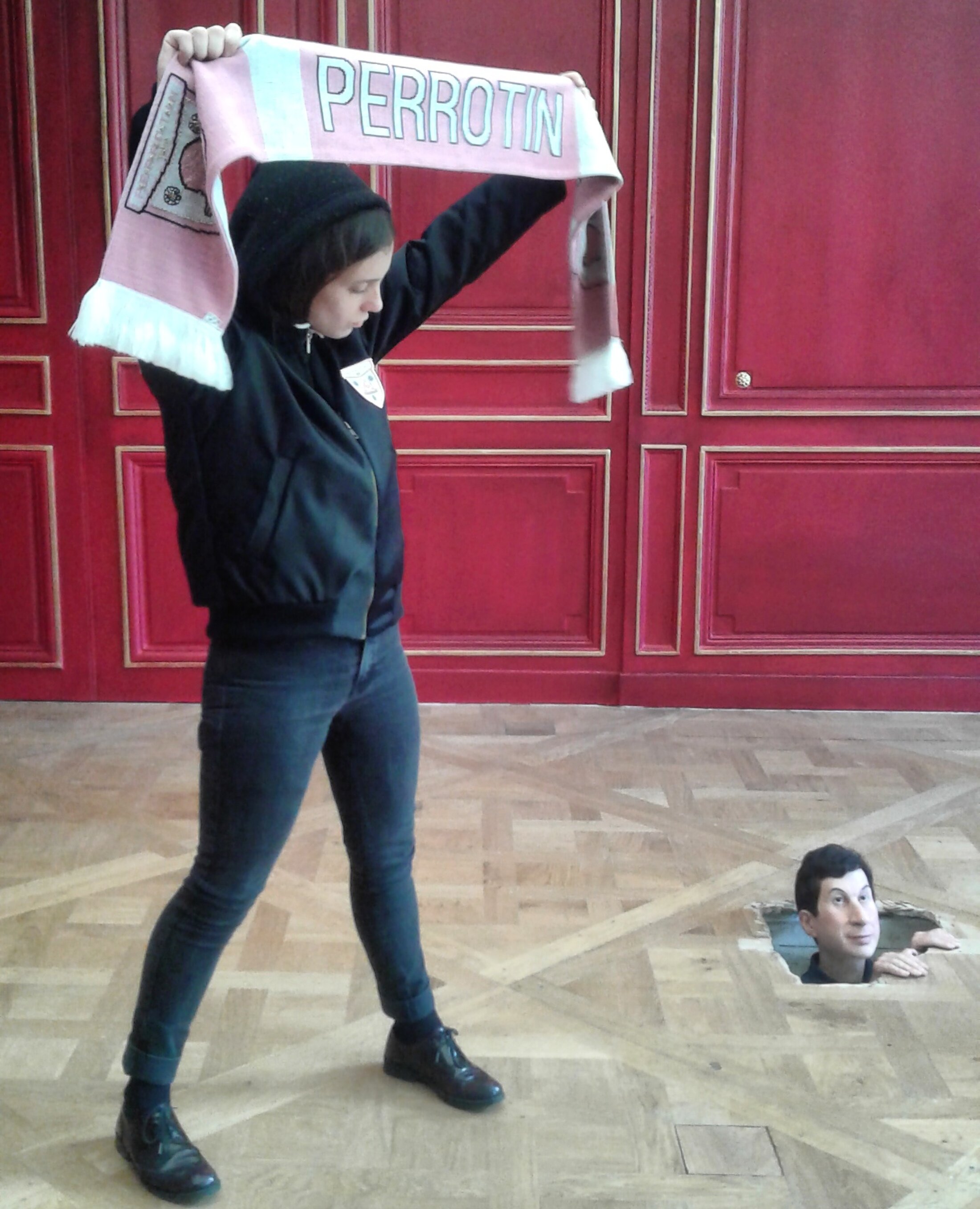 Aurore - J'ai la chance d'avoir une galeriste, Chloé Salgado, qui soutient mon travail et me défend sur les réseaux sociaux lorsque je suis attaquée par des personnes qui m'accusent de copier Maurizio Cattelan. Comme il est beaucoup plus connu que moi, on pense que c'est moi qui le plagie. C'est assez ironique, mais ça m'est arrivé plus d'une fois ! Des structures comme Artagon et Les Magasins Généraux m'ont soutenue en m'invitant à intervenir lors de l'exposition "Par amour du jeu" en 2018 pendant la Coupe du Monde. J'ai pu organiser une compétition de street foot entre différentes galeries, artist-run space et écoles d'arts. Sur les dix équipes invitées, sept sont venues. Le tournoi devait se dérouler sur une journée et les participants repartaient avec le maillot et l'écharpe de leur équipe.