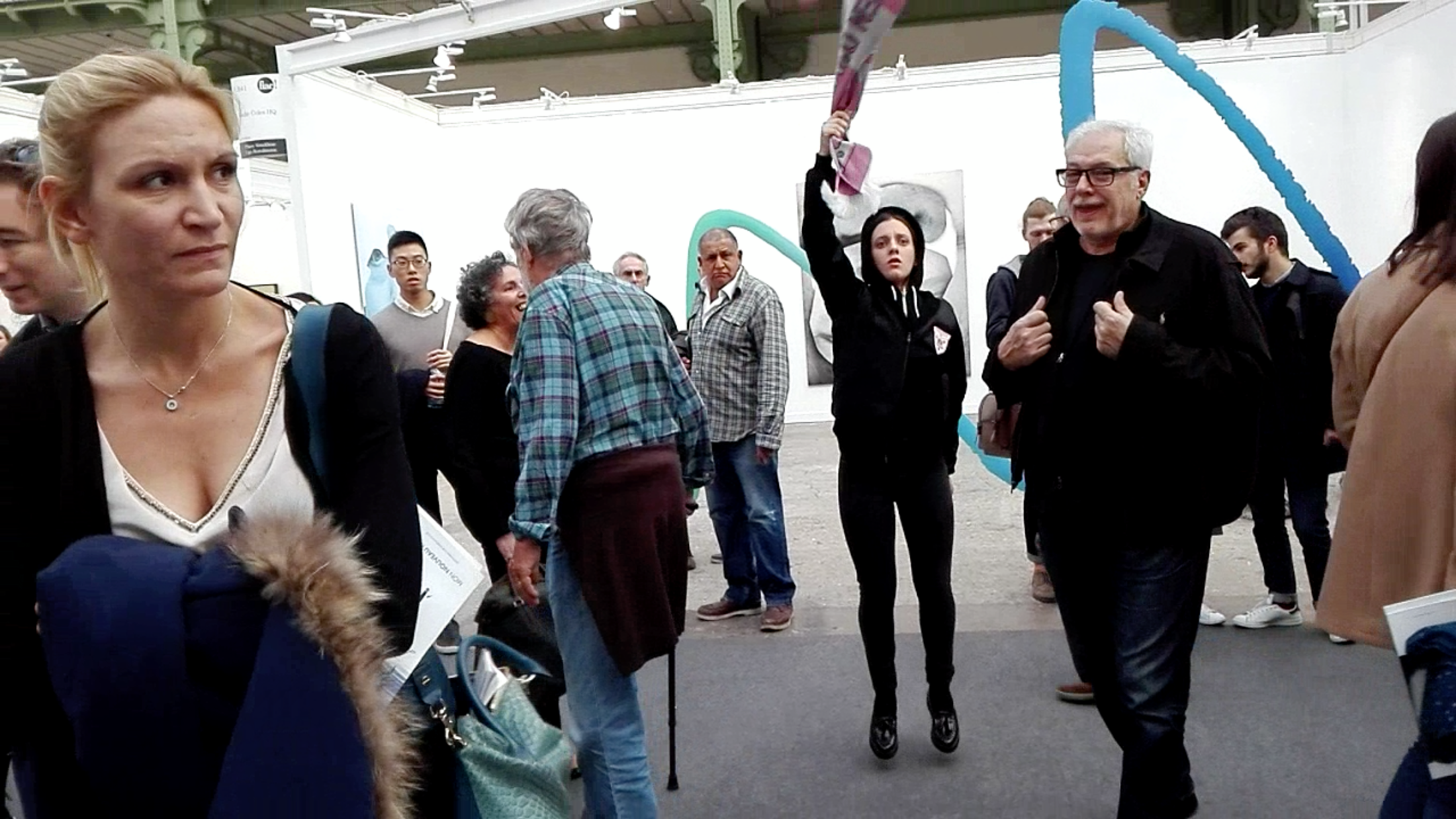 "Lors de ma visite au sous-sol, je tombe sur une pièce avec une vidéo de Cao Fei, la vidéo parlait des ouvrières chinoises et de leurs conditions de vie et de travail dans les usines en Chine, et moi je regardais ça chez François Pinault, alors qu'en tant que chômeuse, j'ai déboursé 7 euros pour voir ça."