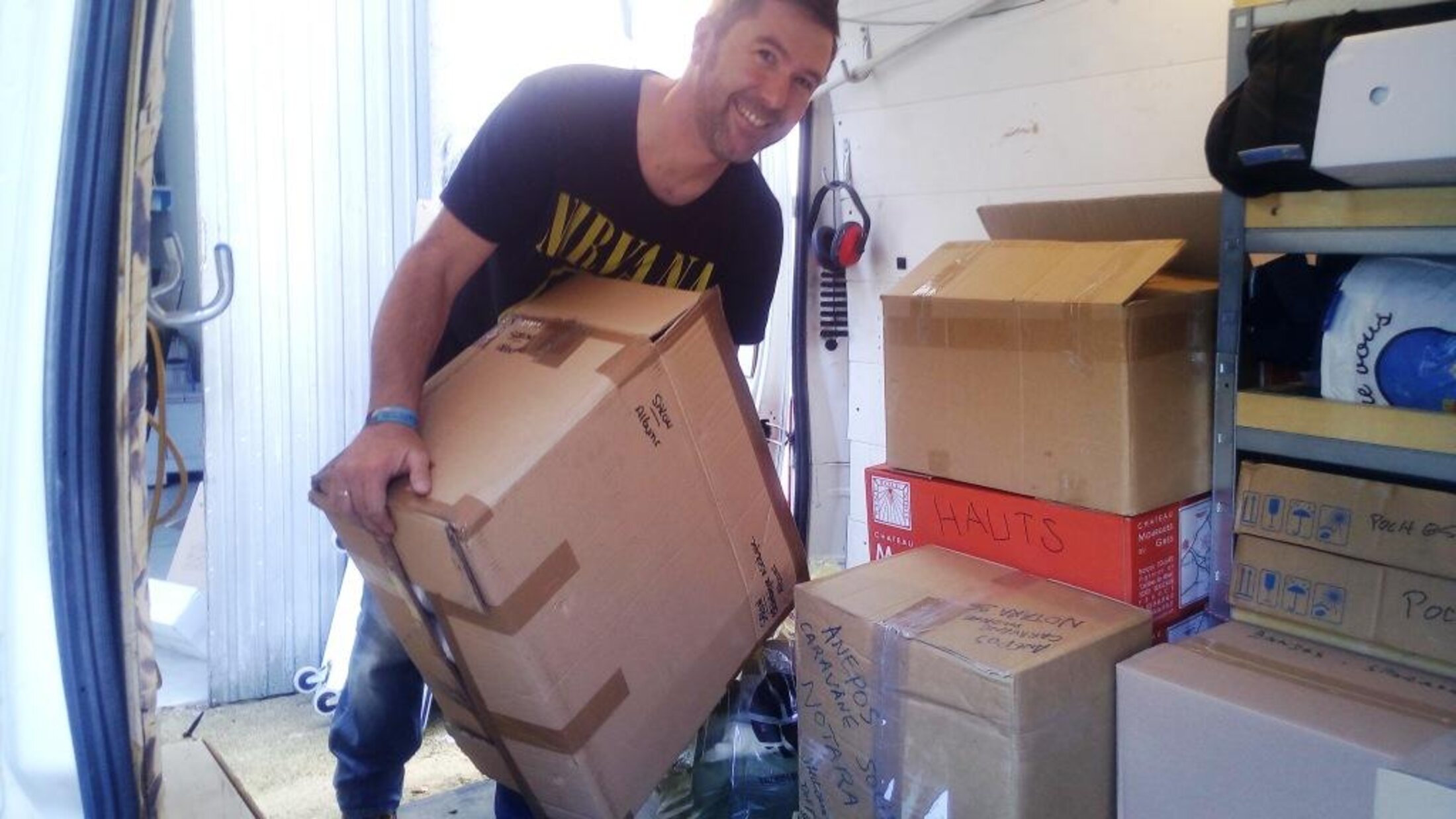 On trouve de tout dans cette collection de fourgons blanc. Plusieurs centaines de cartons triés, avec leur marchandises identifiées, imbriqués comme si l'on jouait à Tetris.