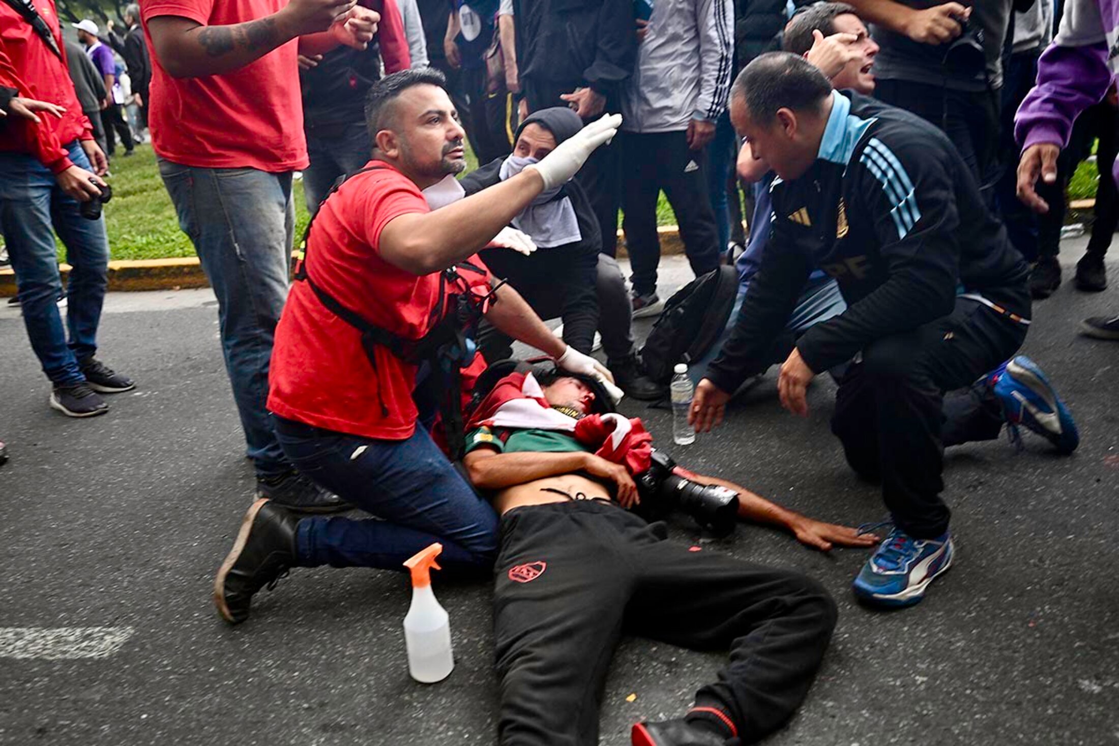et ceux qui les accompagnent pour le simple fait d'exercer leur liberté d'expression. Le prêtre Francisco « Paco » Olveira, membre du Groupe de prêtres en option pour les pauvres, qui le 07/05/25 est allé soutenir la marche des retraités fut blessé au visage en essayant d'aider un homme âgé tombé à terre. A cet égard, il ne faut pas oublier que lors de la manifestation du 12/03/25, une grenade lacrymogène a été lancée à la tête du photographe Pablo Grillo, grièvement blessé et sorti du coma récemment.