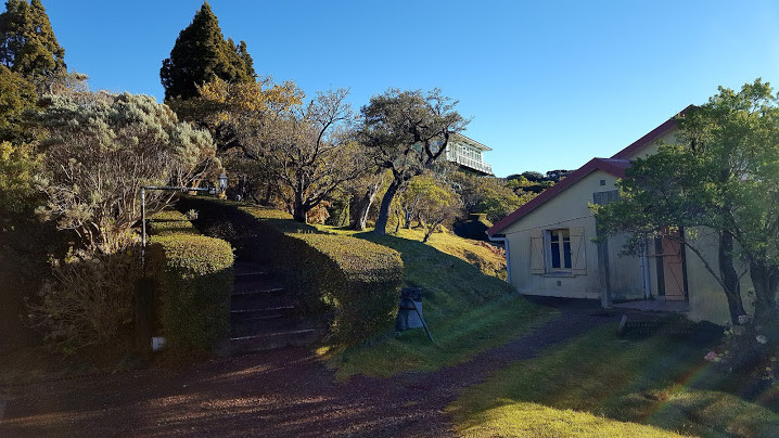 Nous arrivons rapidement au gîte du volcan. Ce gîte diffère des précédents : les allées sont taillées au cordeau et l'aménagement des chambres fait plutôt penser à un hôtel. Ca nous change !