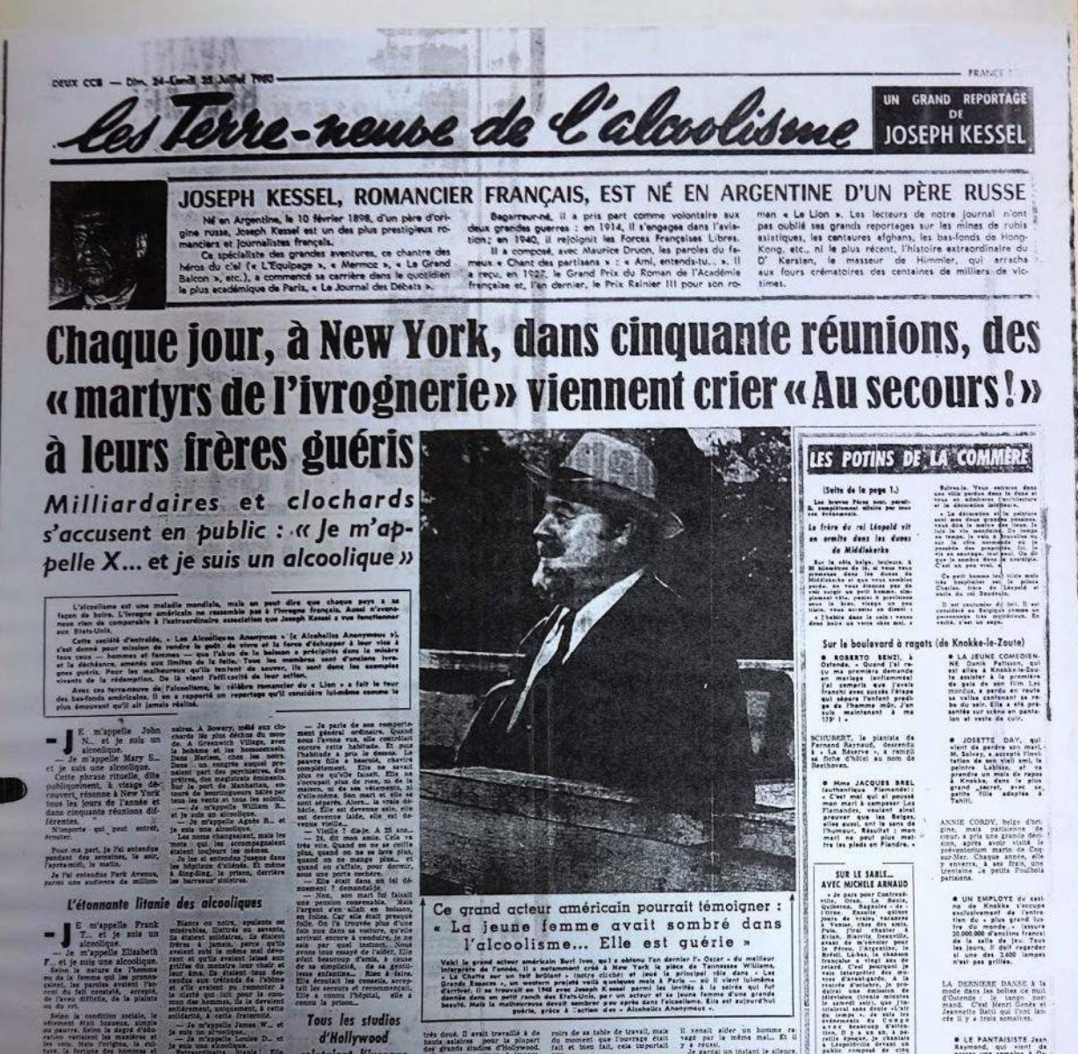 Ce sont des gens “merveilleusement ordinaires”, “extraordinairement banals” : c’est ainsi que Joseph Kessel, à l'origine de l'implantation des alcooliques anonymes en France au début des années 60 grâce à son reportage publié dans le quotidien France Soir sur les Alcooliques anonymes de New-York, qualifiait les dizaines de personnes assistants aux réunions. L’identité ne compte pas (juste un prénom), seul importe, pour devenir membre, le désir d’arrêter de boire - “Cette liberté est la première marche de l’acceptation de la maladie alcoolique”.