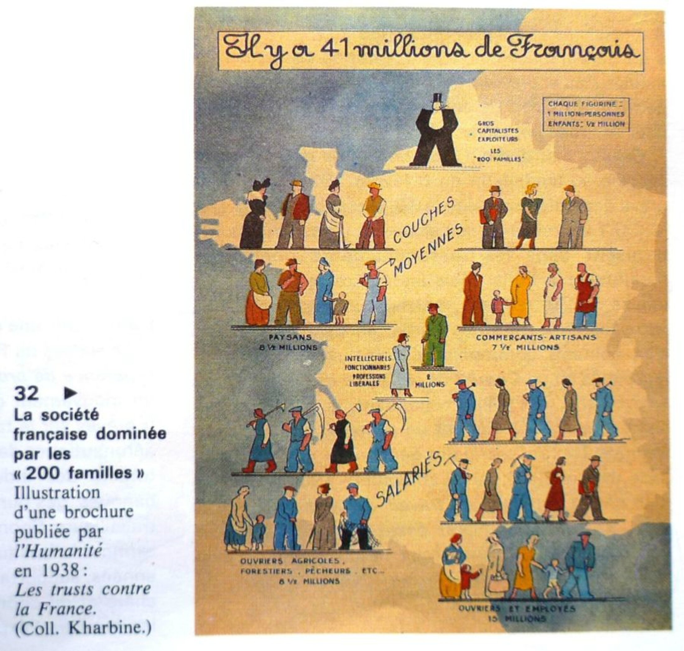 Cette carte, publiée dans une brochure de L’Humanité en 1938, montre suggère que la société française est serait dominée par les 200 familles.