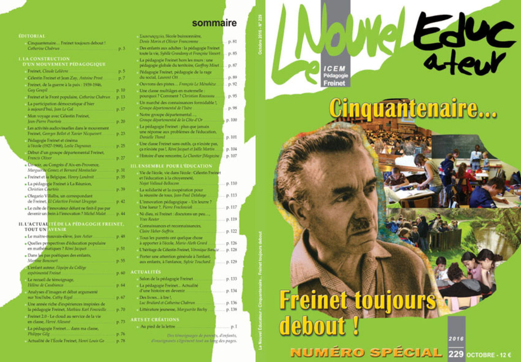 – La construction d’un mouvement pédagogique avec des articles d’historiens, de compagnons de Freinet et de militants : Claude Lelièvre, Antoine Prost, Guy Goupil, Catherine Chabrun, Jean Le Gal, Jean-Pierre Pourtois, Georges Bellot, Xavier Nicquevert, Francis Oliver, Bernard Montaclair, Henry Landroit, Christian Courtois, Michel Mulat et le mouvement Freinet urugayen.