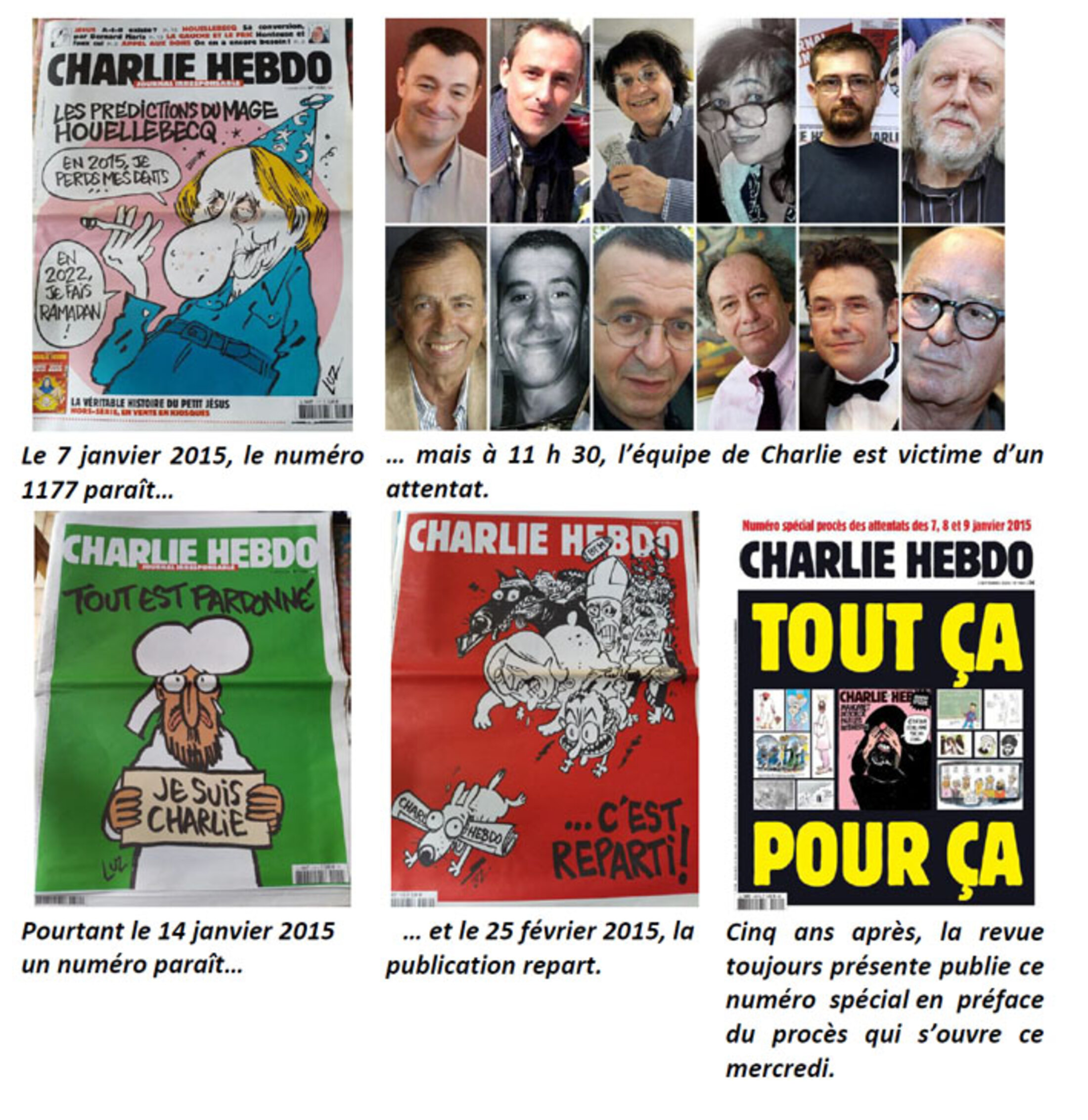 Le 2 septembre 2020 le procès des attentats commence, Charlie Hebdo publie un numéro spécial avec les caricatures. Les menaces repartent… la protection sur les lieux du procès se renforce.