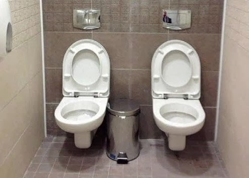sont tous deux installés dans d'ultra-modernes toilettes caucasiennes