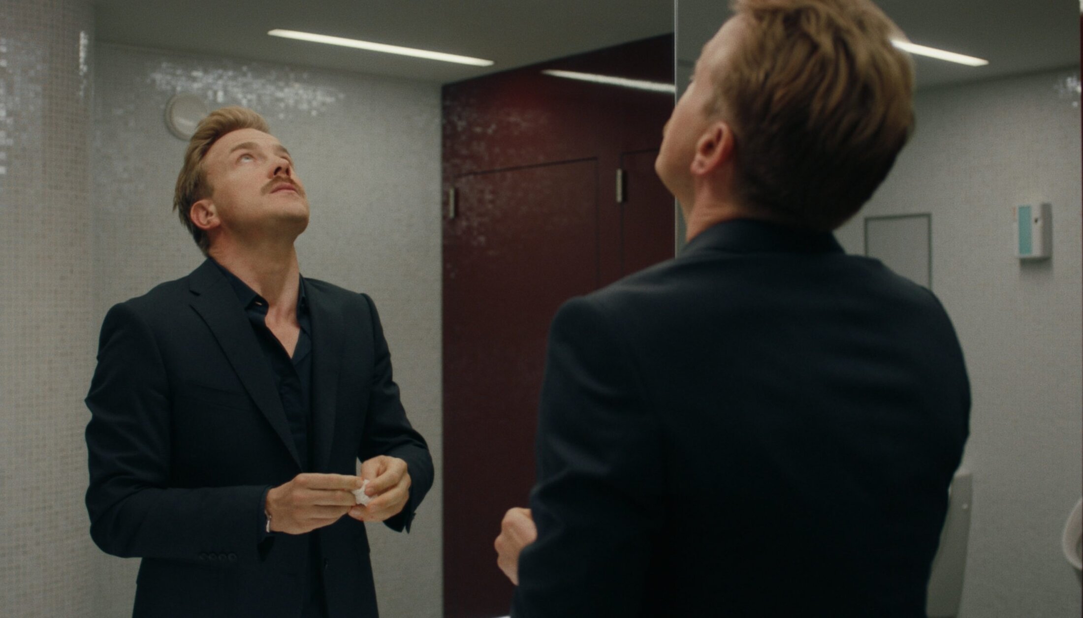 Le Meilleur des mondes d’Aldous Huxley n’est pas loin ici et pour tourner en dérision cette réalité sociale cauchemardesque, Bernhard Wenger a recours aux codes du cinéma burlesque, notamment celui de Jacques Tati et d’Elia Suleiman, le tout en revanche concentré dans l’approche intime d’un personnage s’apercevant que l’artificialité des relations humaines qu’il développe pour son métier contamine sa vie privée qui finit par exploser et le plonger dans une profonde solitude à la manière du film précédemment cité de Spike Jonze.