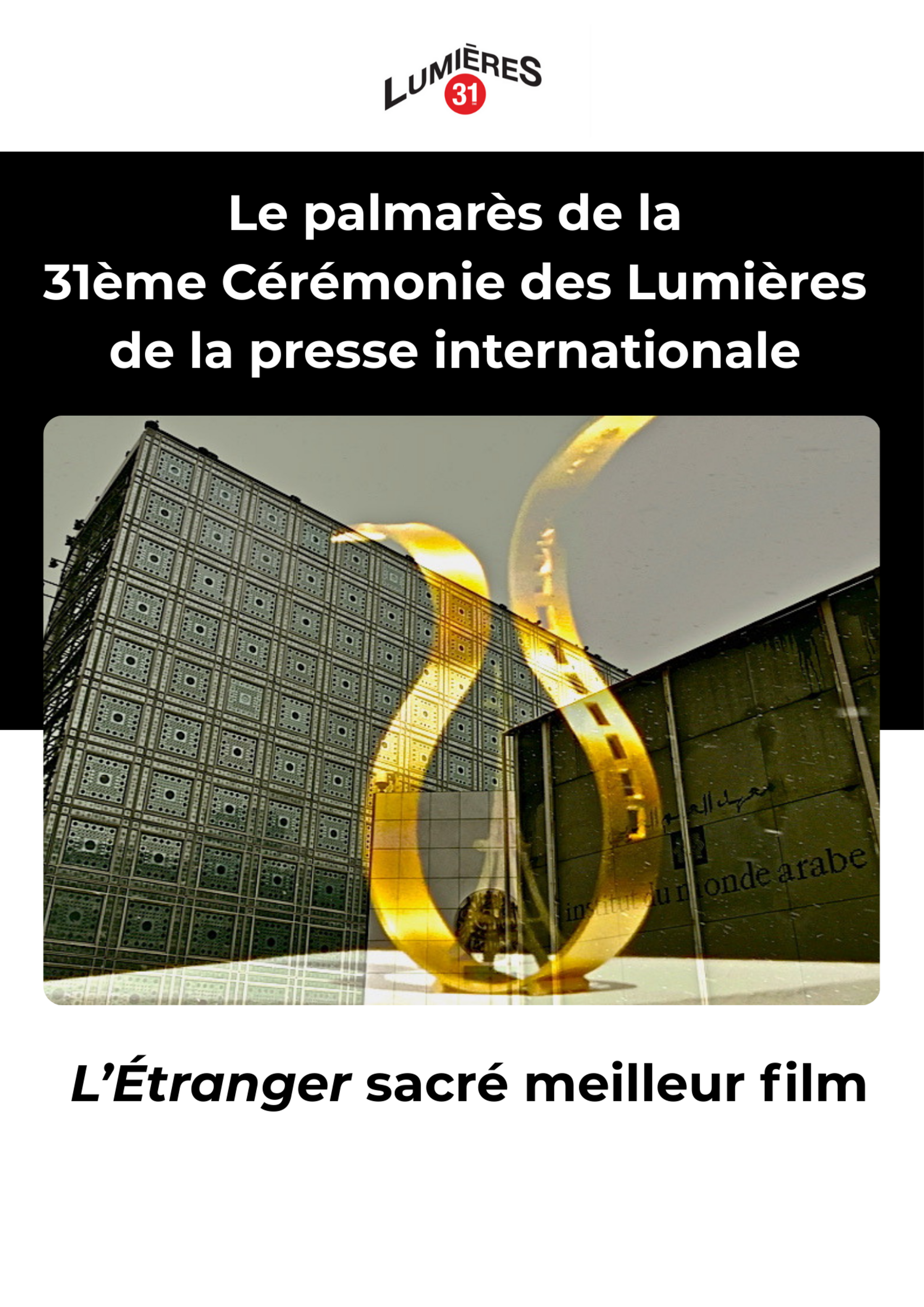 PALMARÈS - 31e CÉRÉMONIE DES LUMIÈRES